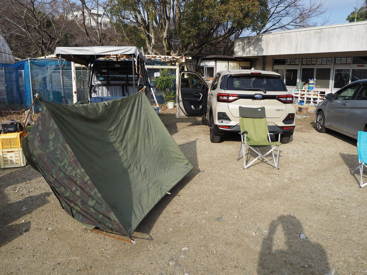 軽トラ・テント泊のお二人はタープ・テント干し
