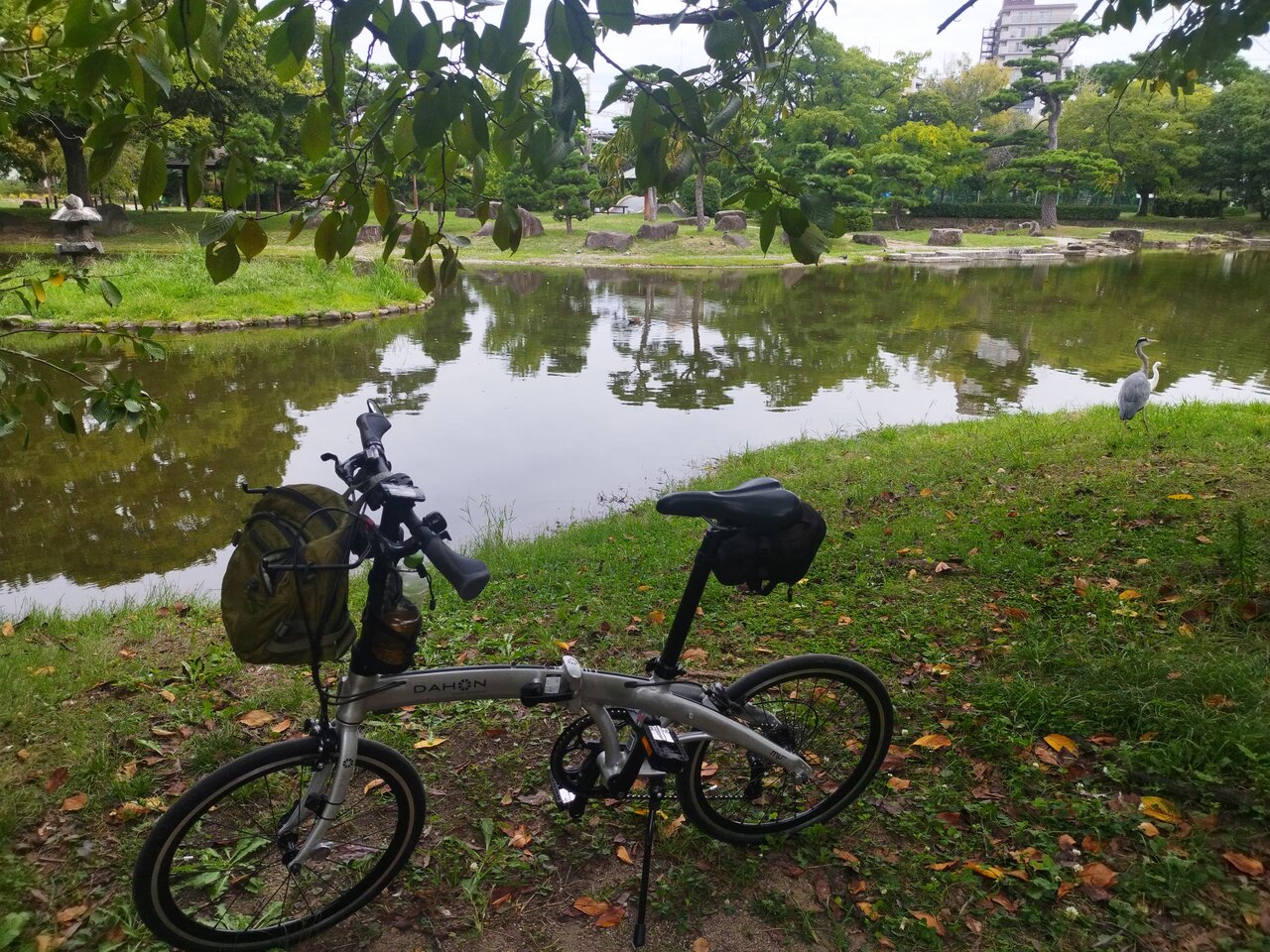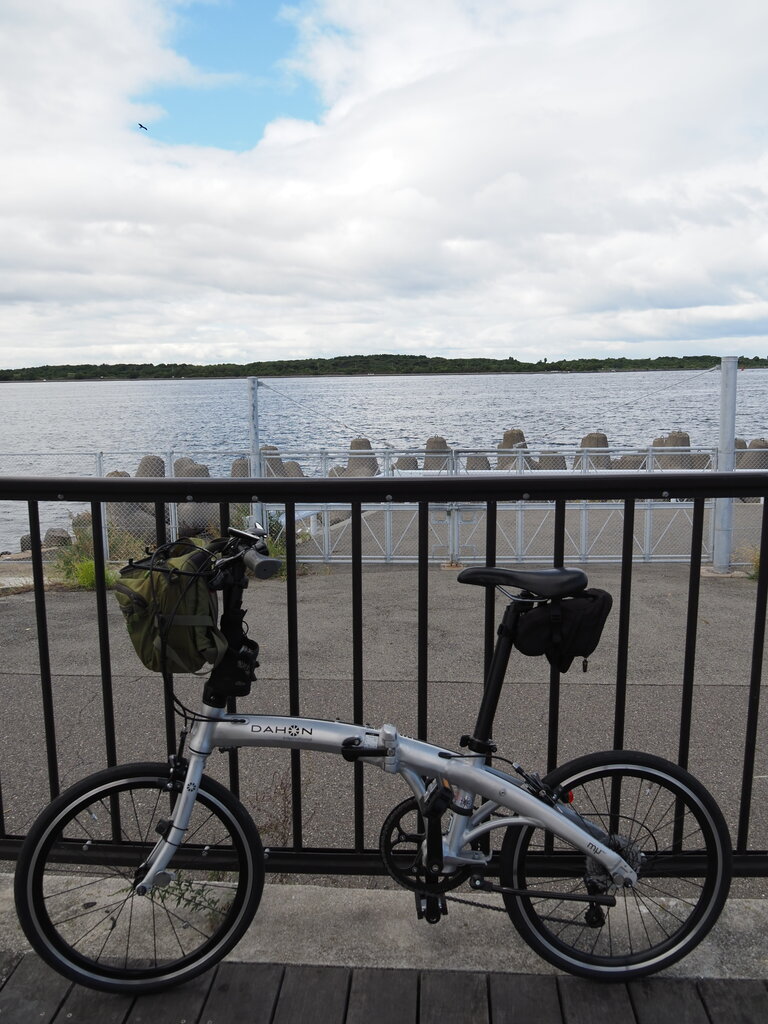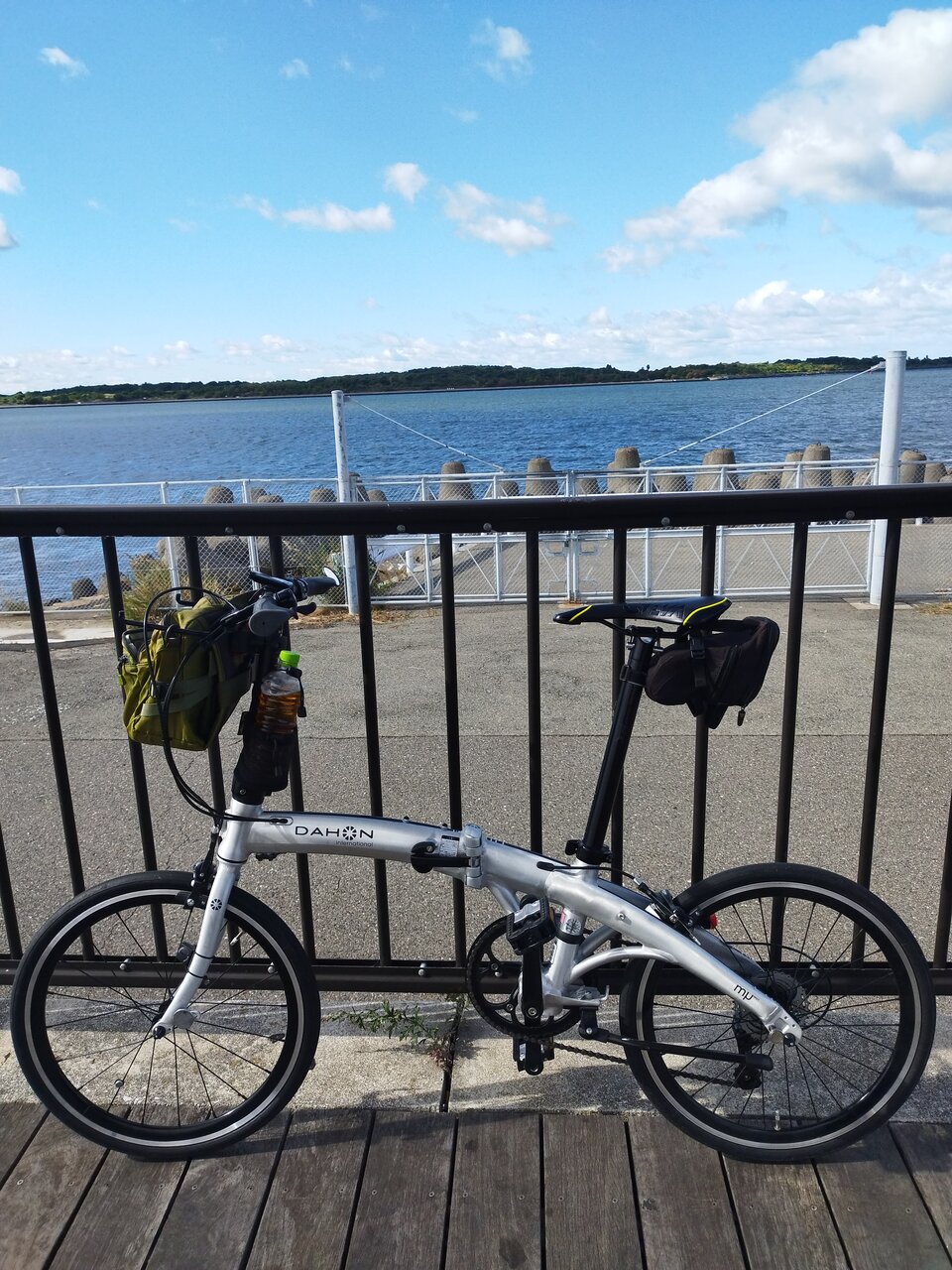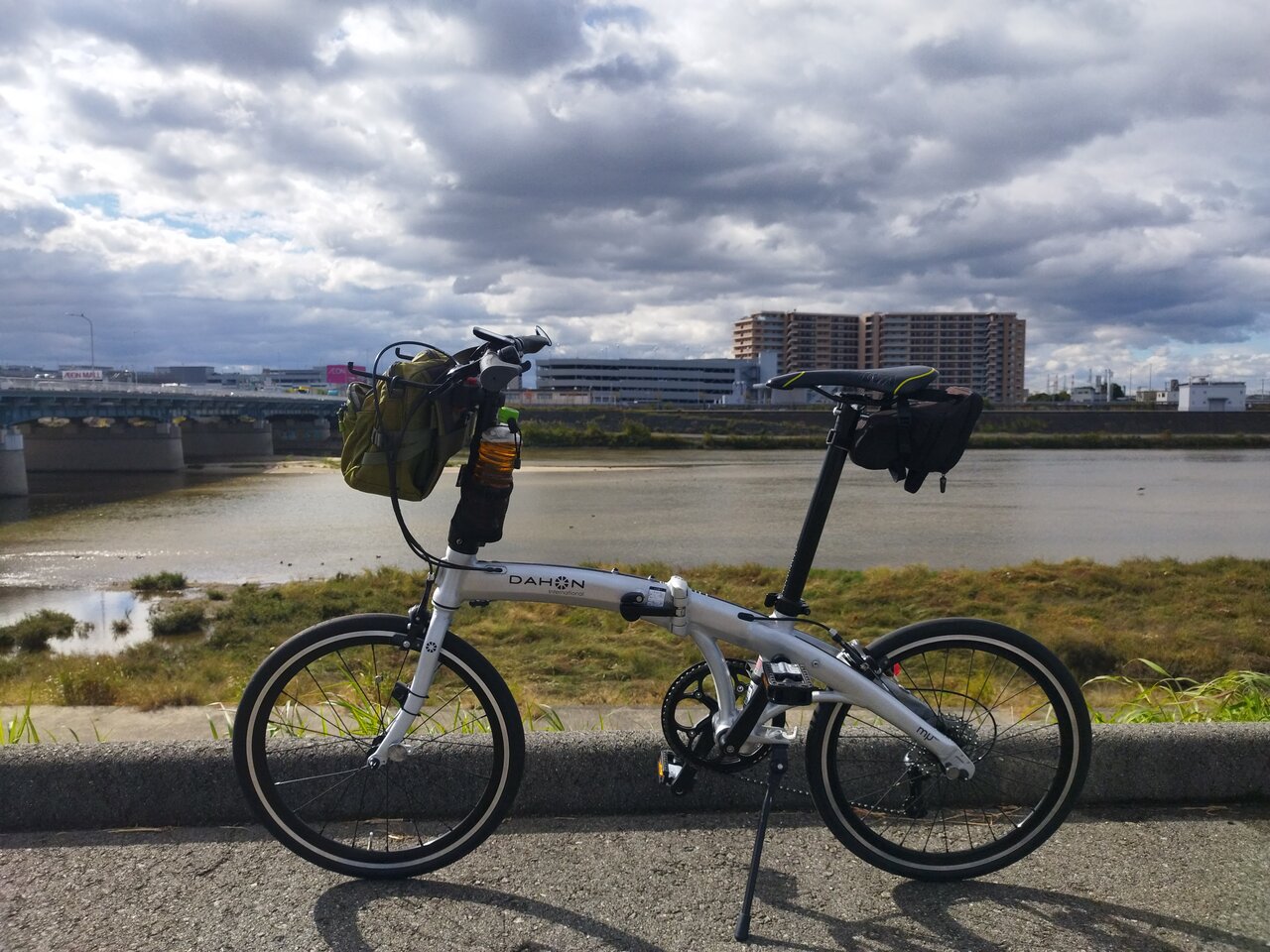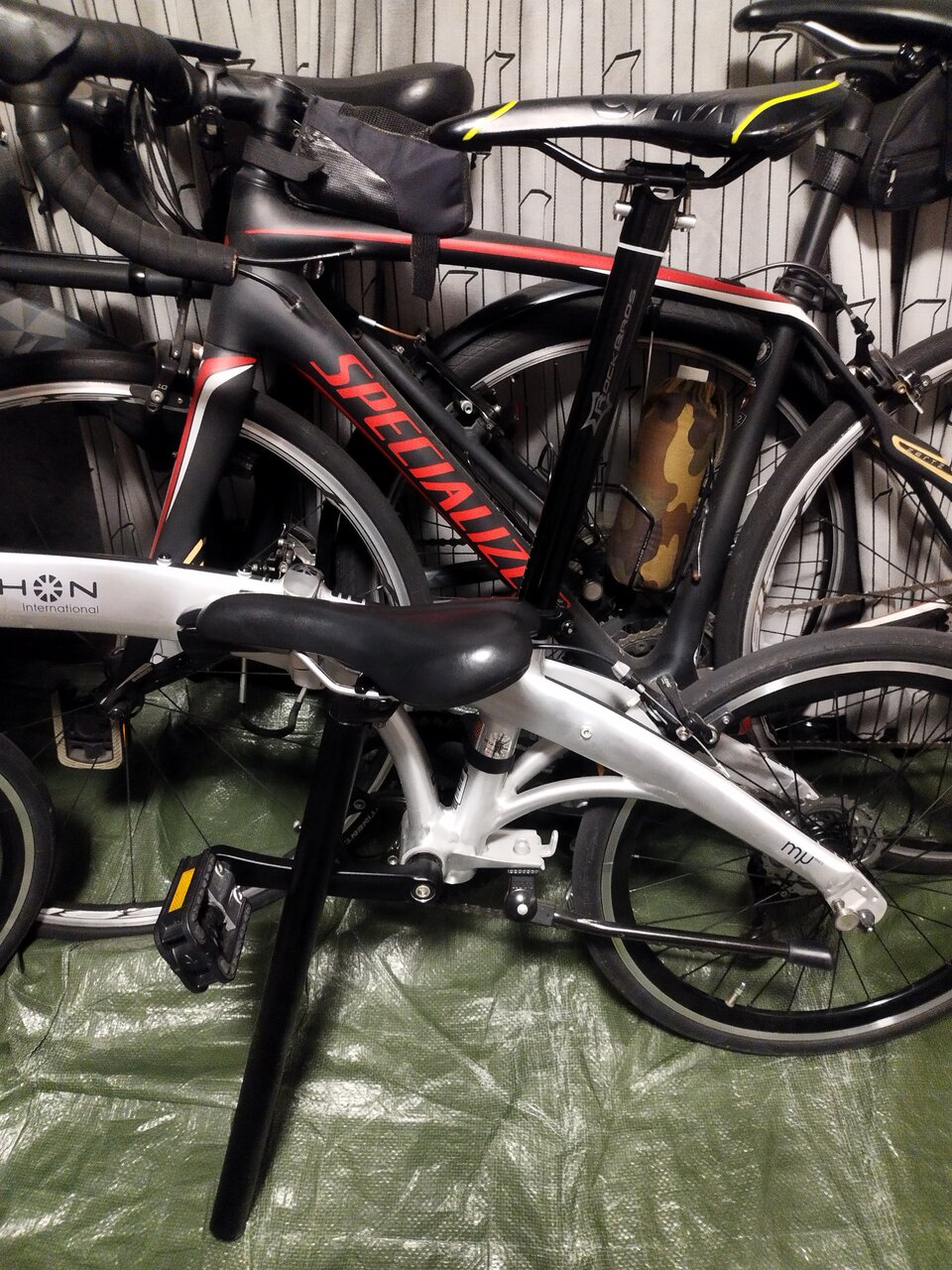 とてもロードバイクには乗れそうもなく、恒例によりミニベロのサドルを下げて・・・