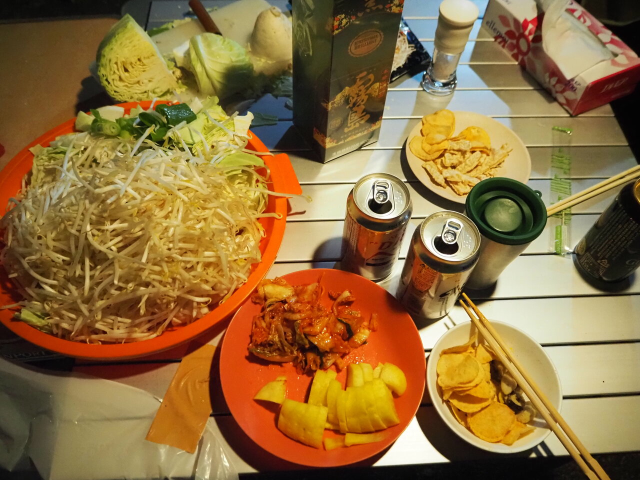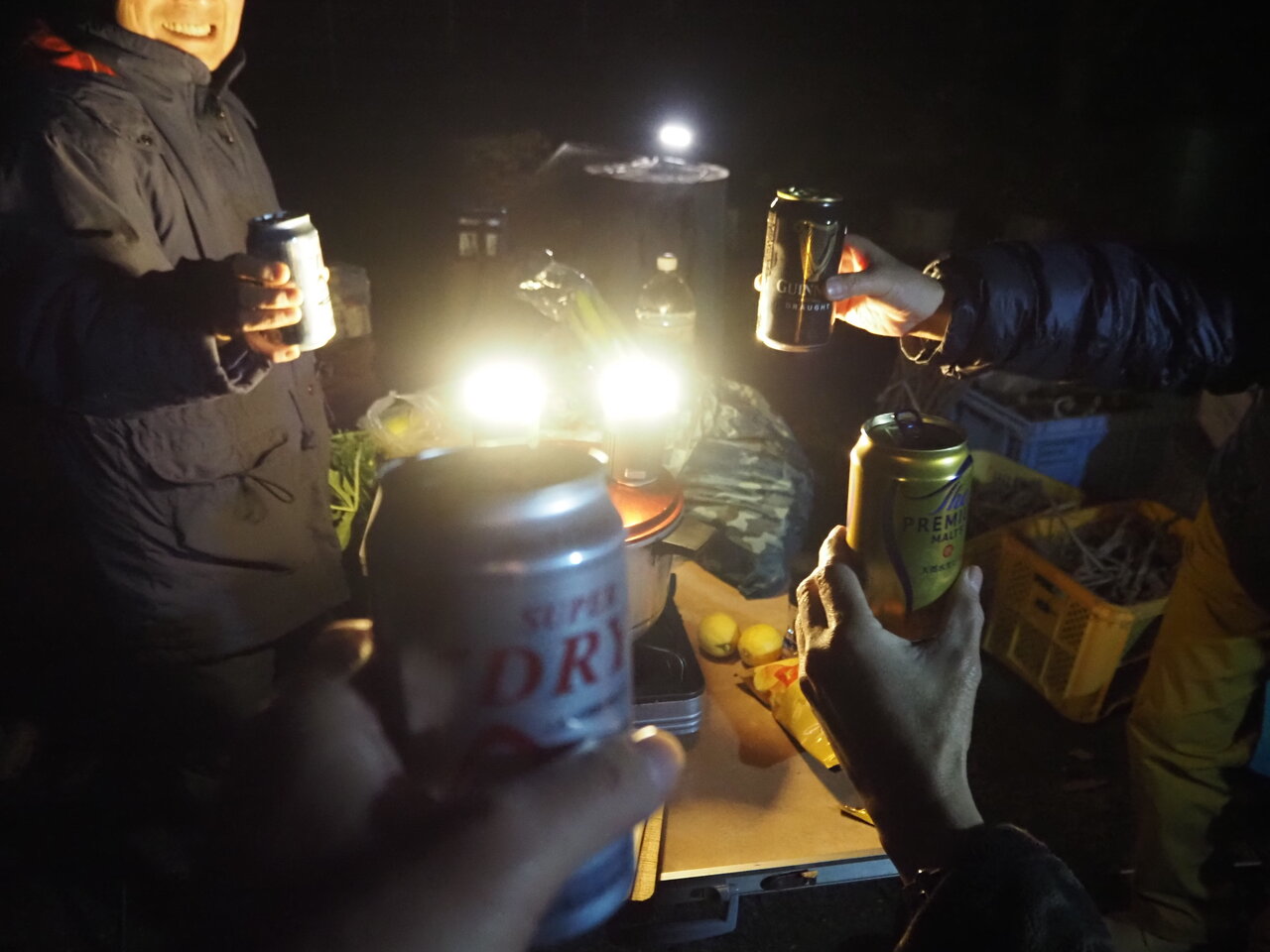 夕方にスーパーに集合、のんびりたっぷりの買い出しを終え宴会準備をすれば・・・