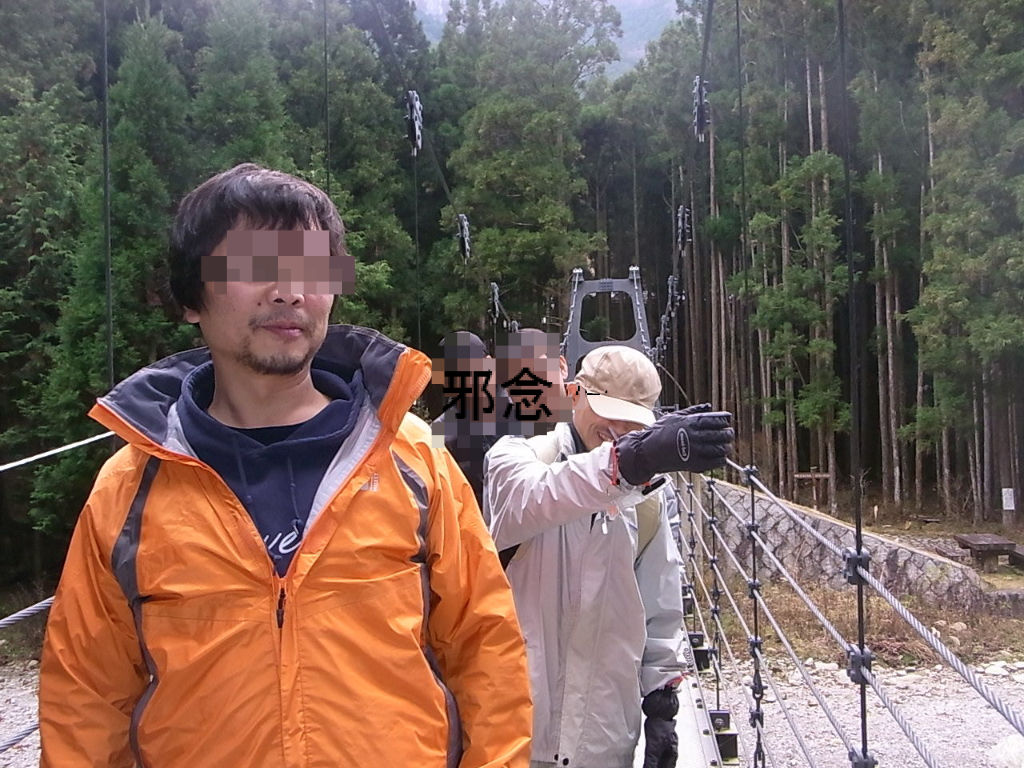 で、この吊り橋を渡ったところが蟷螂の窟の入り口。