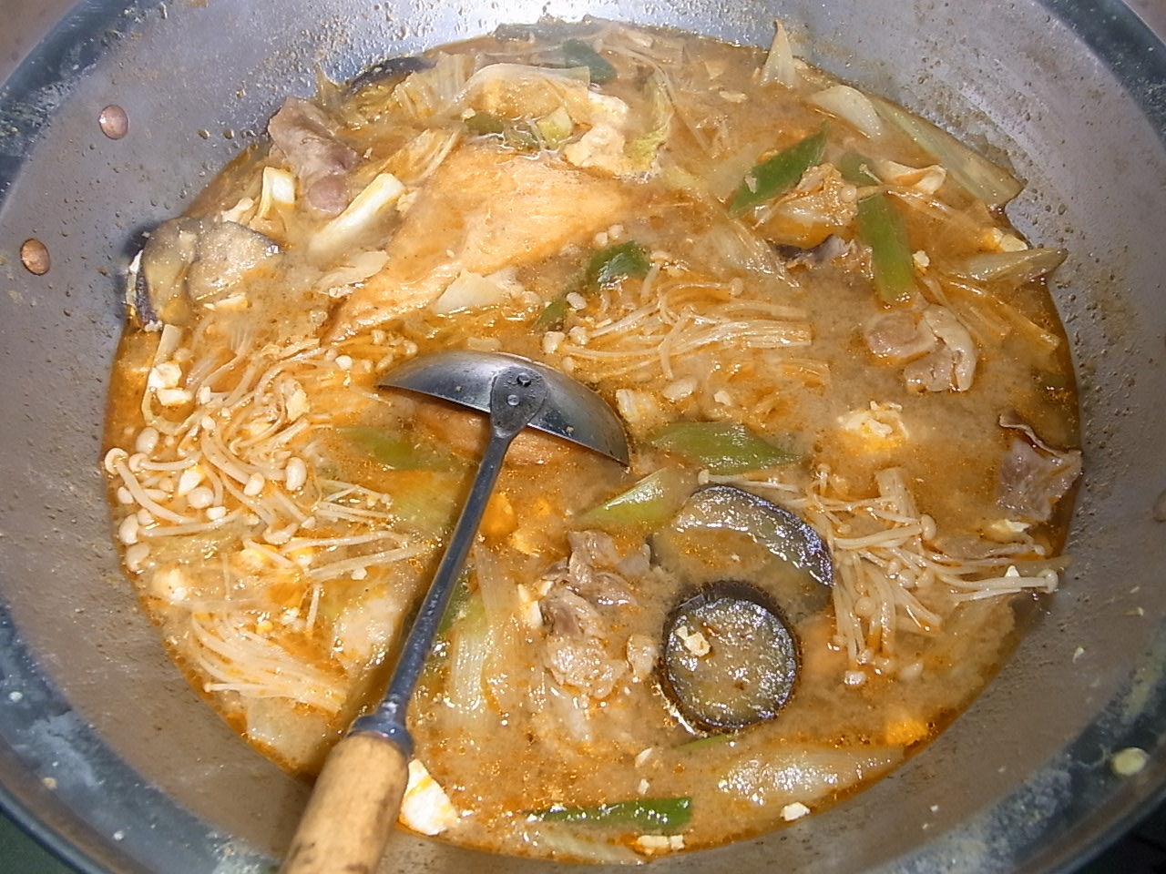 胡麻味噌キムチチゲの残りに、うどんや余った食材を投入した豪華うどんすきで温まるころには、