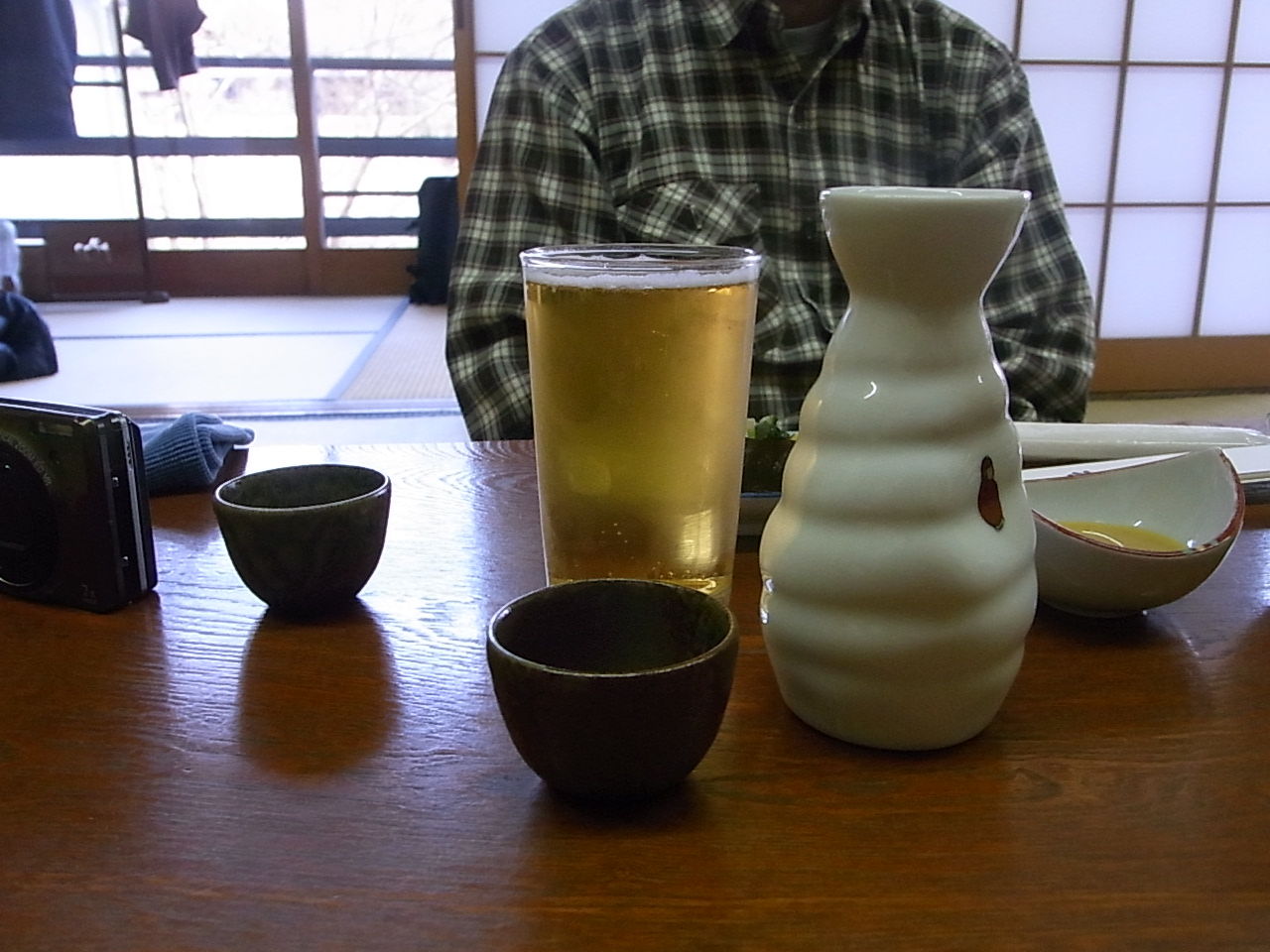 ビールと燗酒を目前にして、ご満悦のwingさん・・・ヨ、ヨダレが・・・