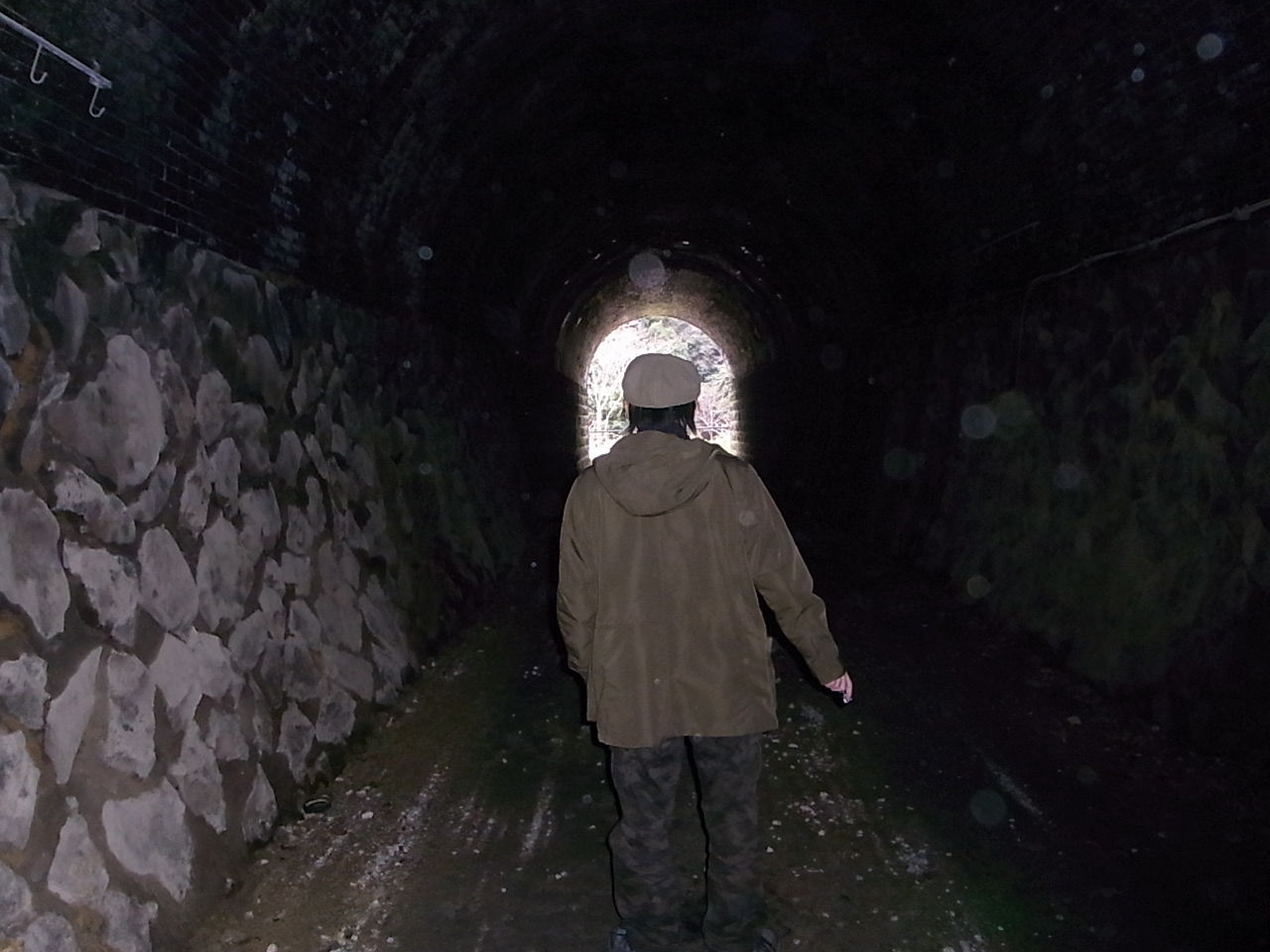 廃線敷を歩いて真っ暗なトンネルに次々と遭遇、その度に生き生きとご自慢ライトを照射してきた御一行ですが、