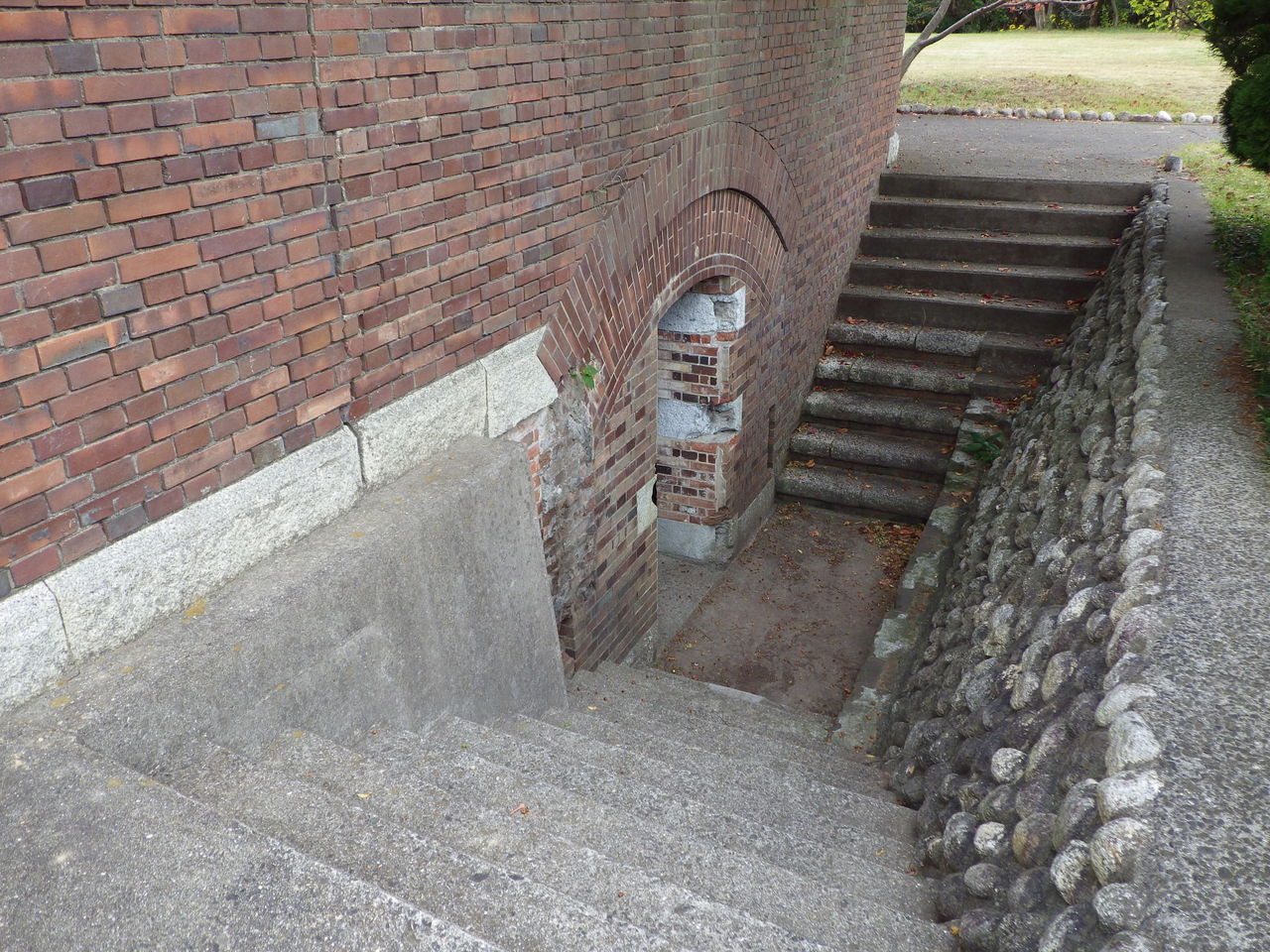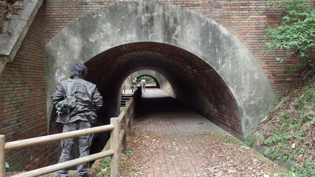 草生した真っ暗な廃道をかき分けて行くと、古いレンガ造りの階段や、石造りの橋や壁もあったのですが、
