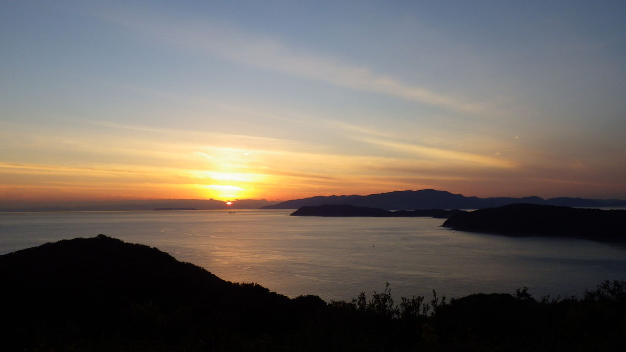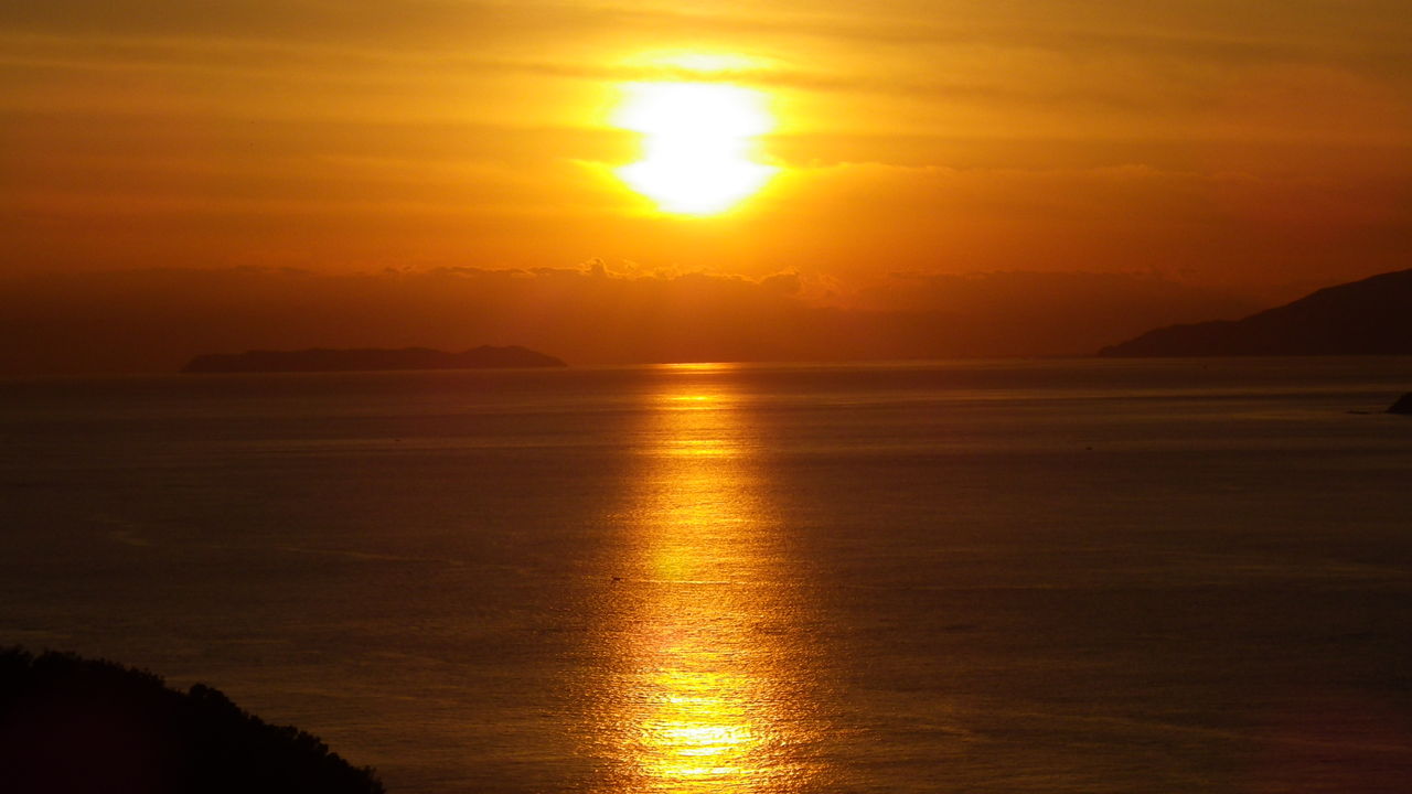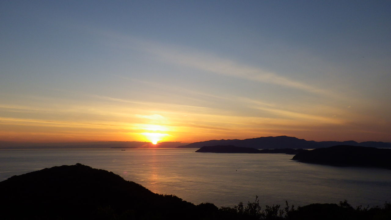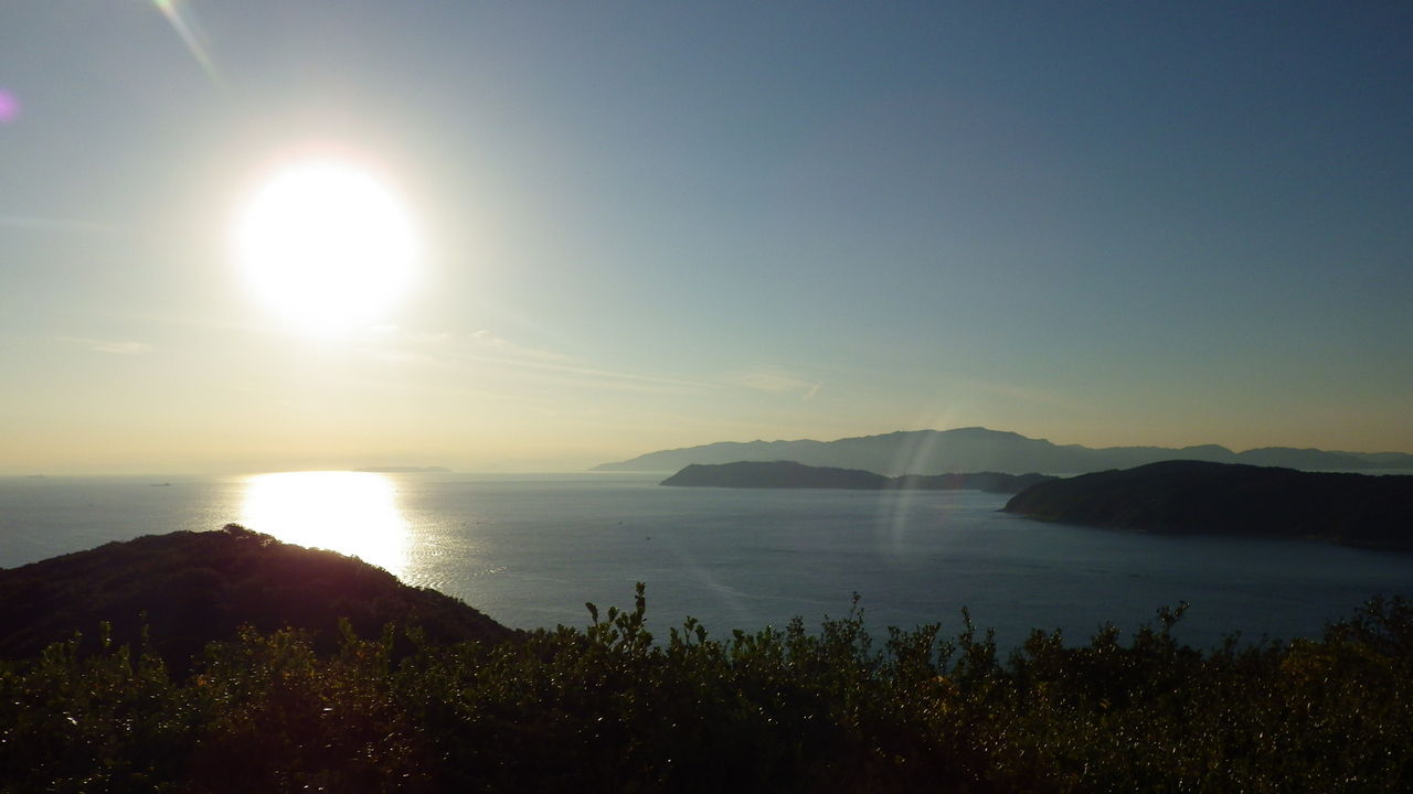 右手前が友ヶ島、その奥は淡路島、太陽の左下が小松島、その奥、すでに雲海と一体になっているのが四国・・・