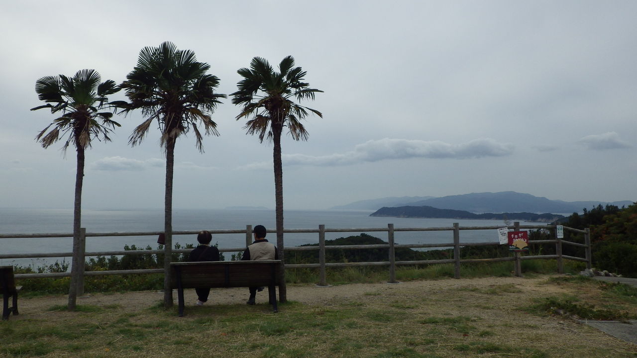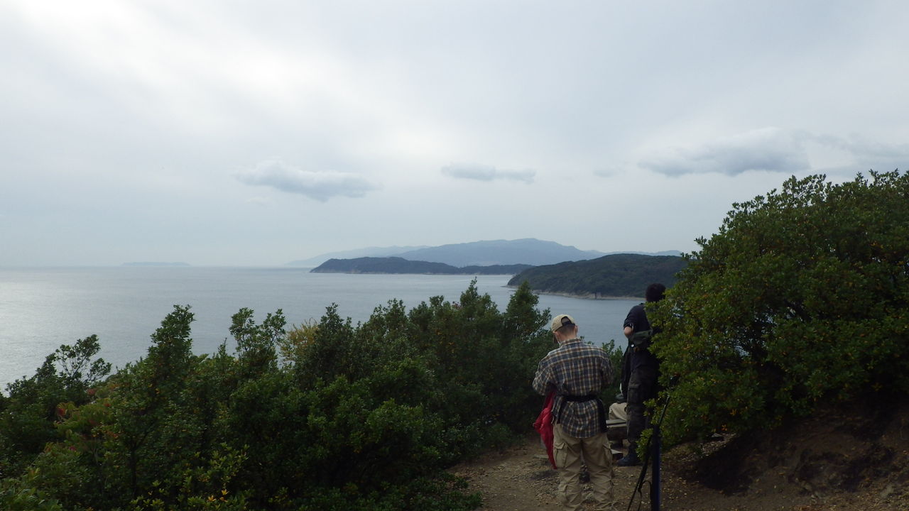 右手前の低い島が友ヶ島、その向こうが淡路島で、天気がいいと正面に四国が見えるのですが、あいにくの曇り空・・・