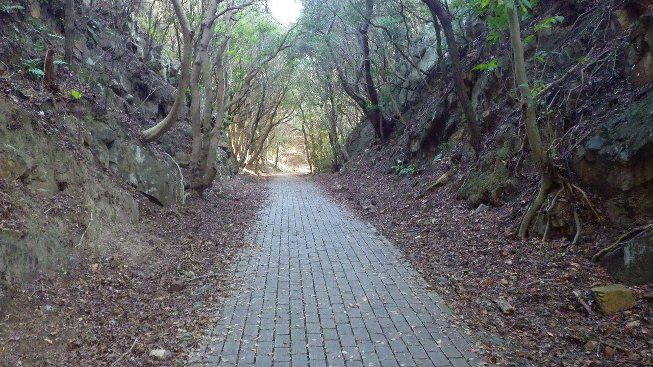 砲台めぐりは、古い軍道を利用したハイキングコースになっています。