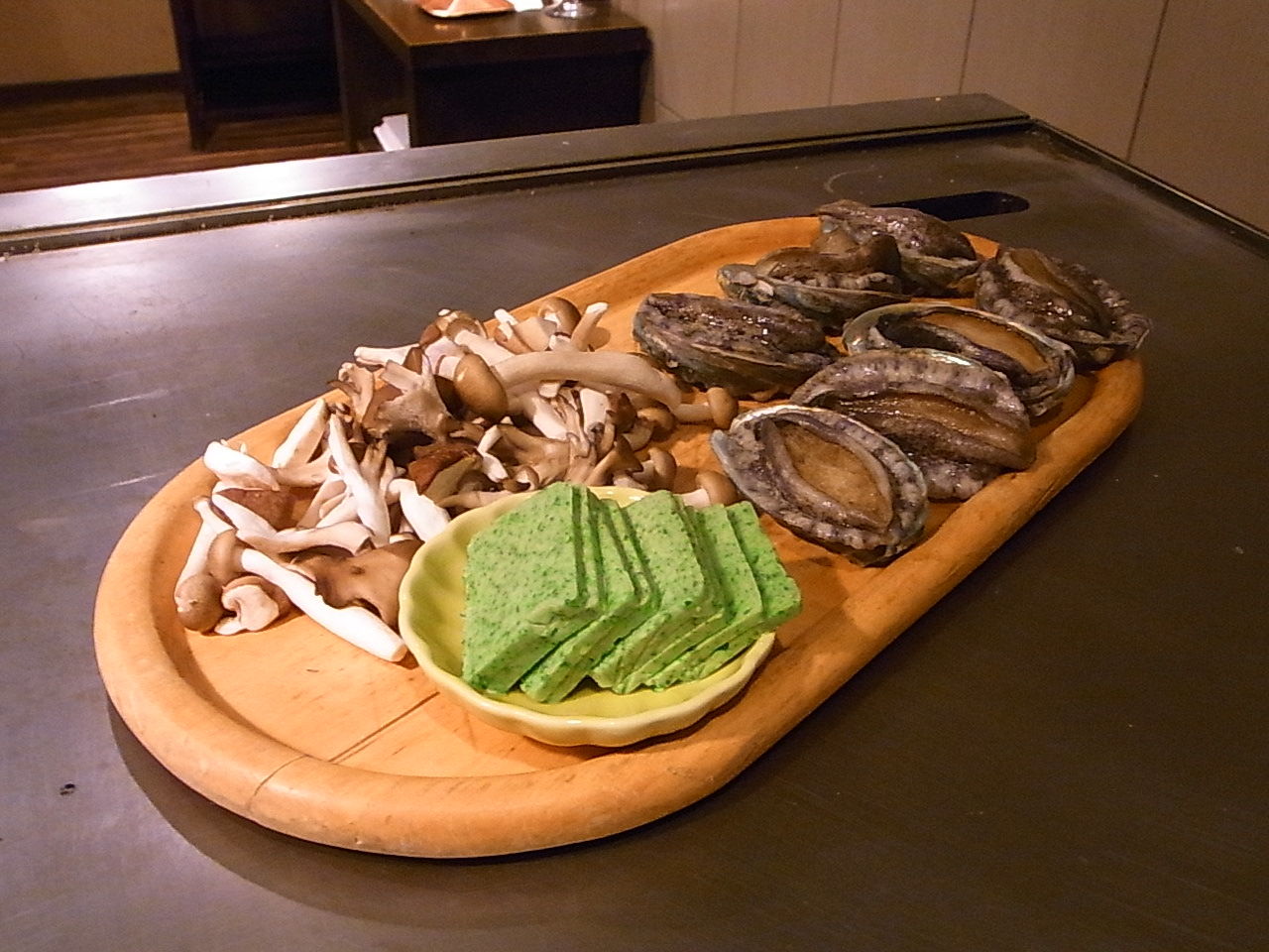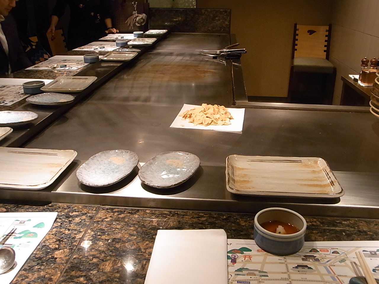 我々だけで貸し切りになる個室があり、見事な鉄板が備え付けてありました。