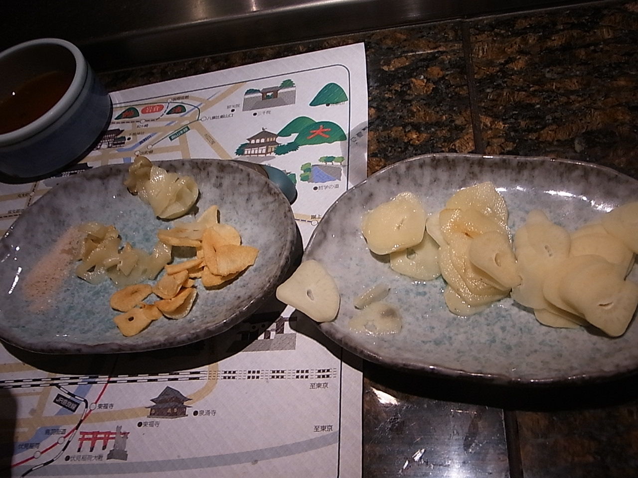フライドガーリックをはじめ、その場でよく炒めてくれたもの、半生のもの、生のものと、それぞれたっぷりと・・・