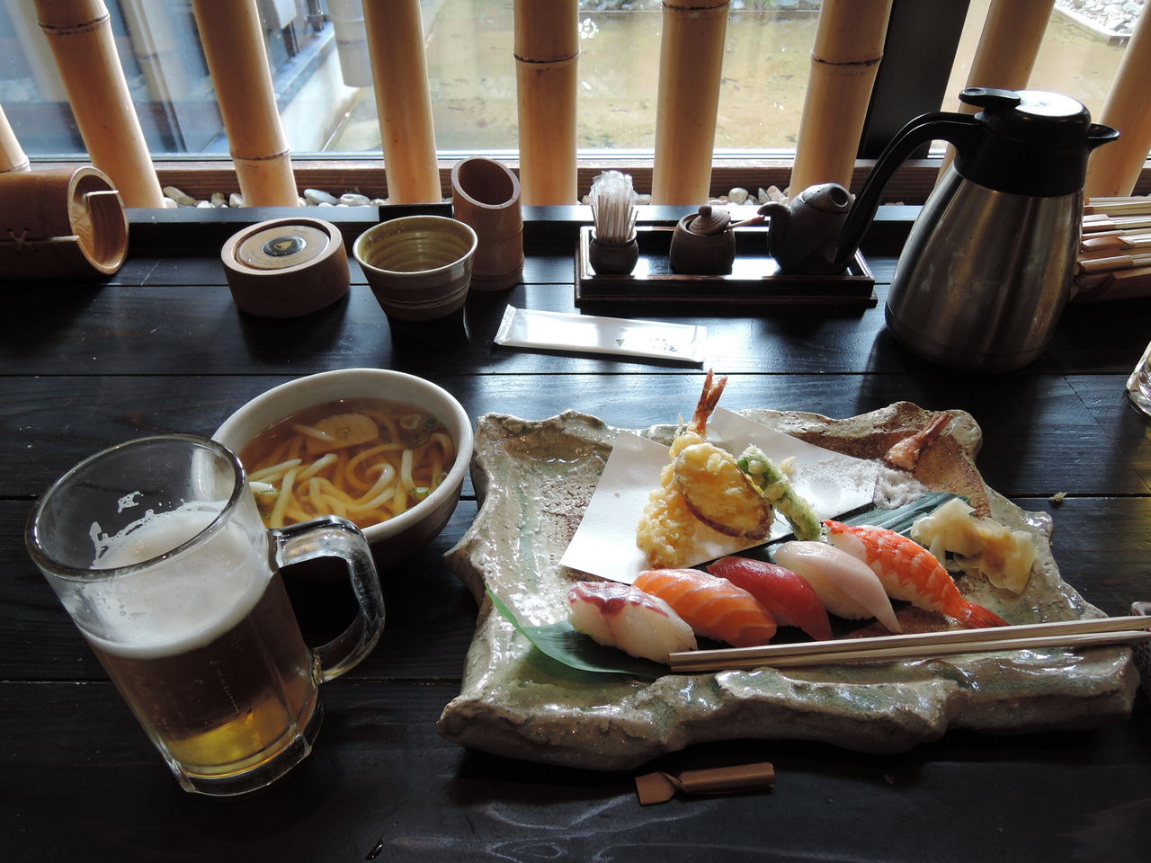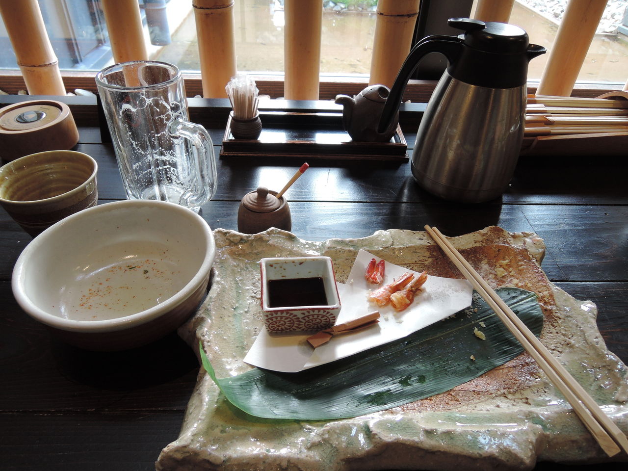 って、すでにビールをひと口飲んで、海老天をひとつ食べた後の画像ですが・・・