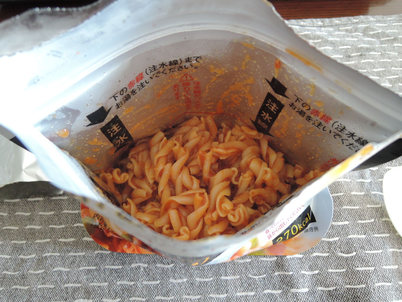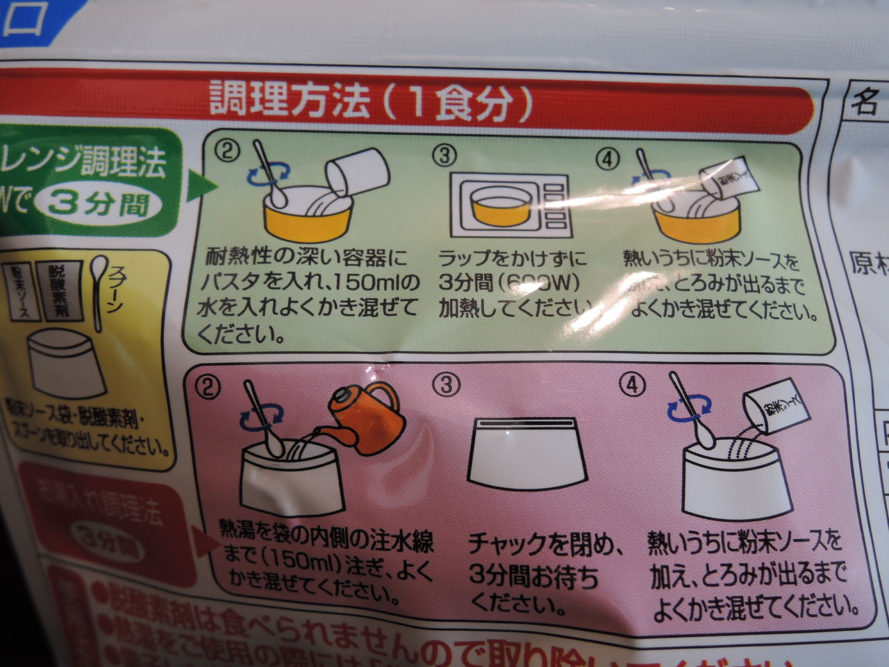そう、150ccのお湯を注いで3分で、それなりのパスタがいただけるのであります。じゅるじゅる