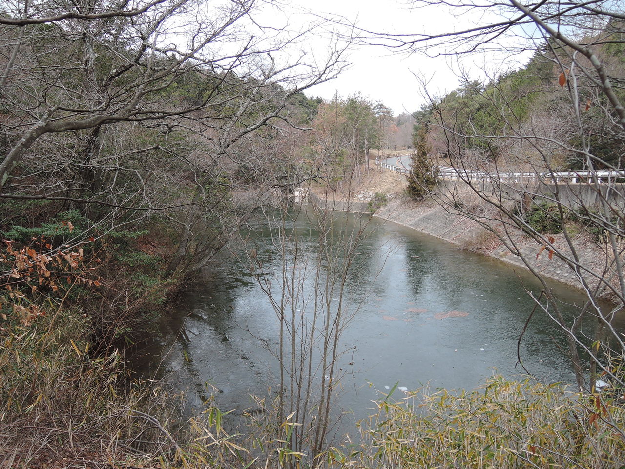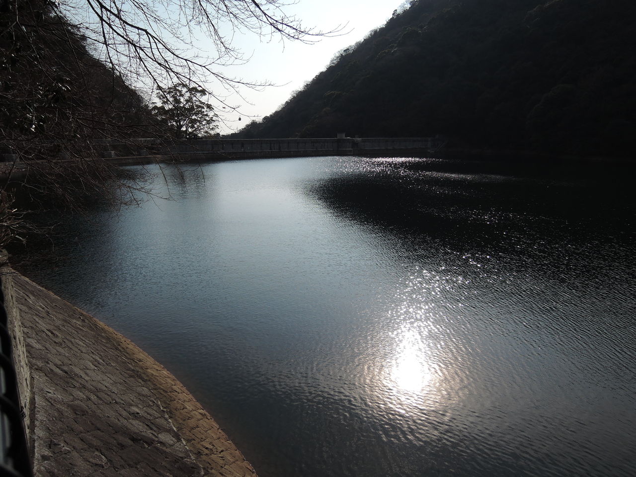 で、堰堤を渡って水源池の畔へ・・・