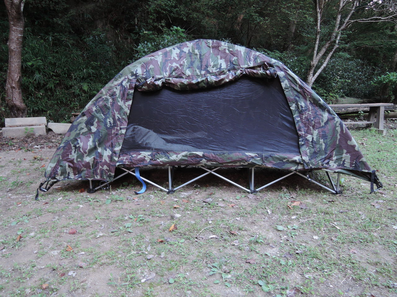 わたくしはバーボンで引き続きダベってたのですが、午前2時過ぎには新機軸のベッドテントに入りました。