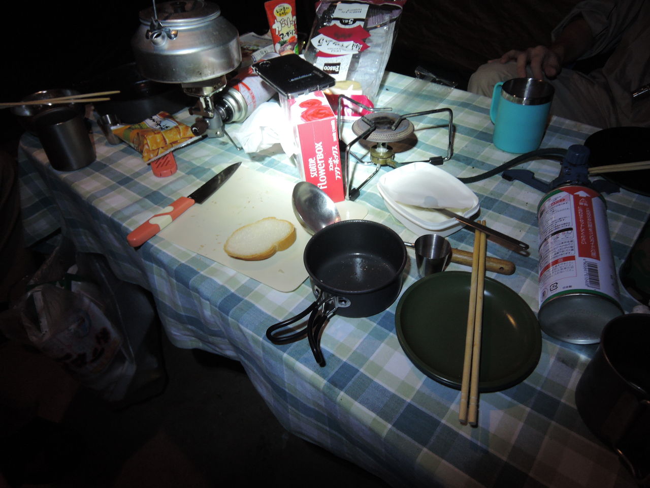 日付が変わる頃にはwingさんが就寝、さらに残り物をつつきながら、赤チャリさんは甘いもの、