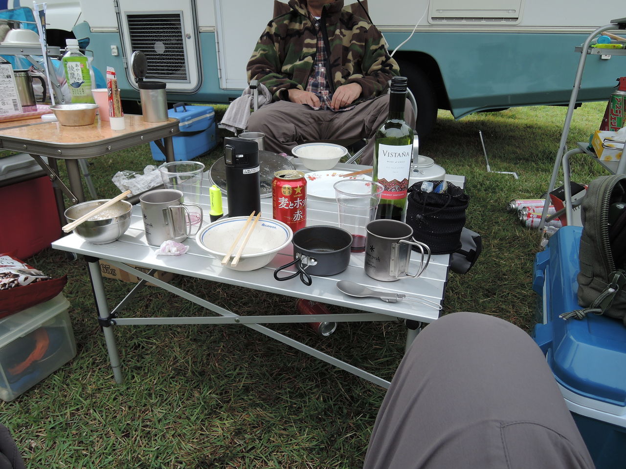 タープや飛びそうなものを片付けて、ま、せっかくなのでわたくしは深夜宴会で食べ続け・・・