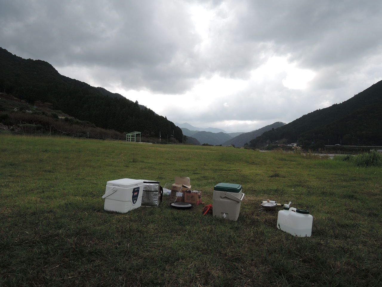 まだ食材ぎっしりのwingさんクーラーボックス群と、炭焼き・石焼・スモークセットだけがポツンと・・・