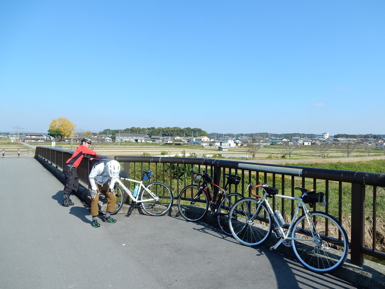 いつもどおり途中であきらめて輪行で帰ろうと、今回は二人とも折りたたみの小径車(ミニベロ)です。