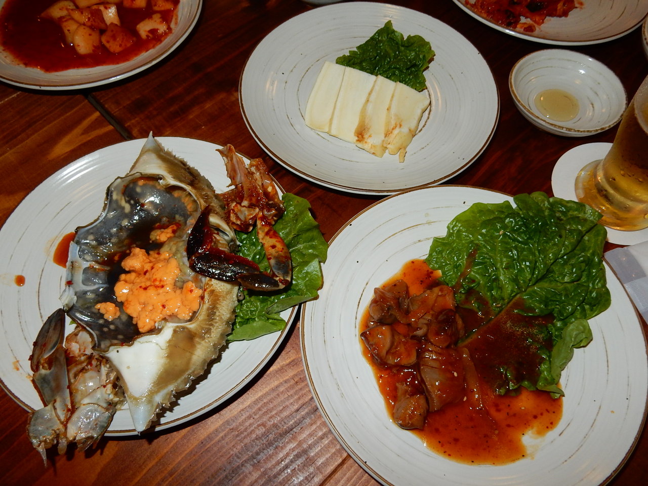 鶴橋の本店と同じく、前菜には名物の高麗人参のお刺身や自家製のキムチ盛合せなど、
