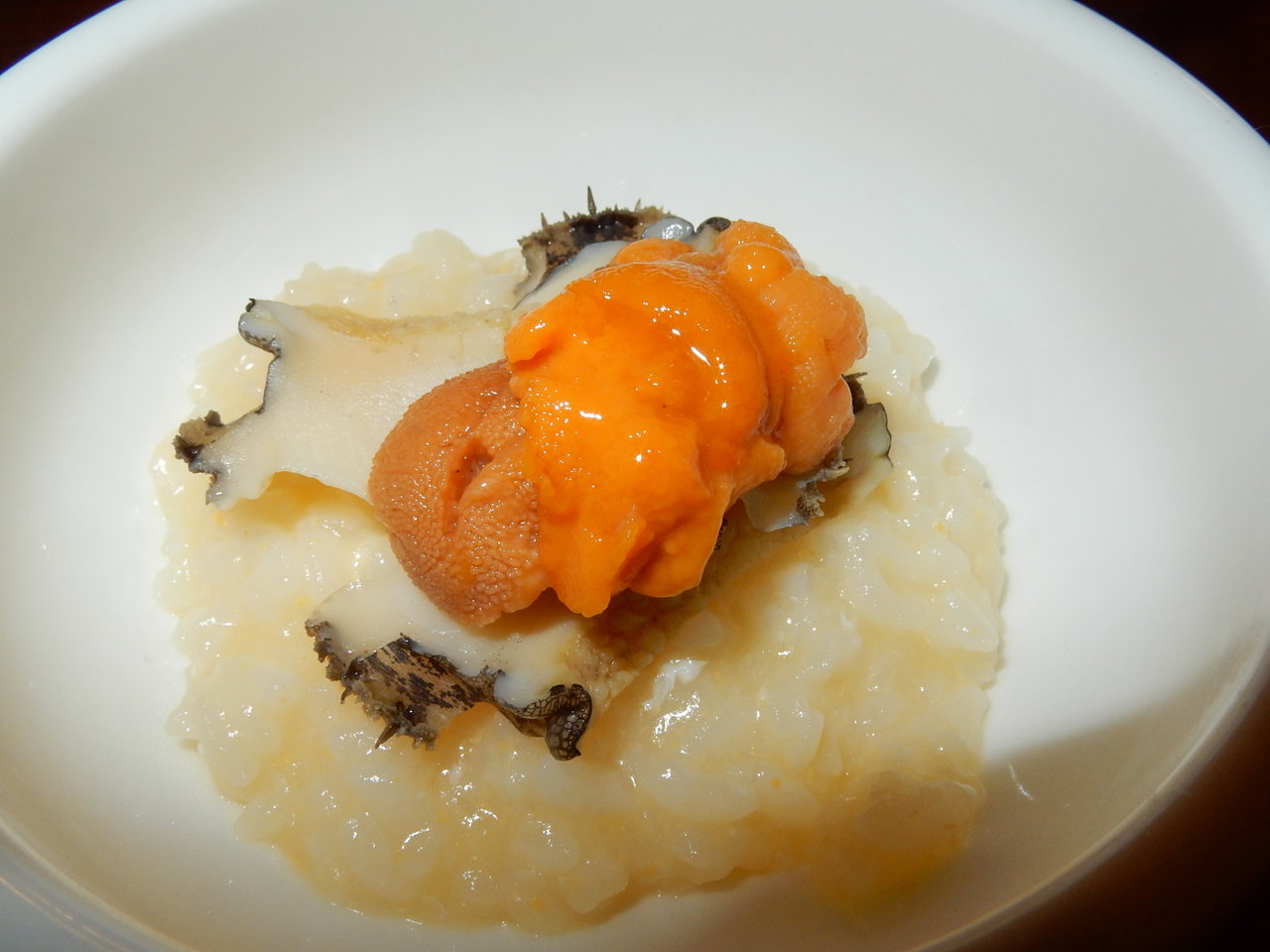 アワビとウニを濃厚なお粥に載せたものですが絶品でした。