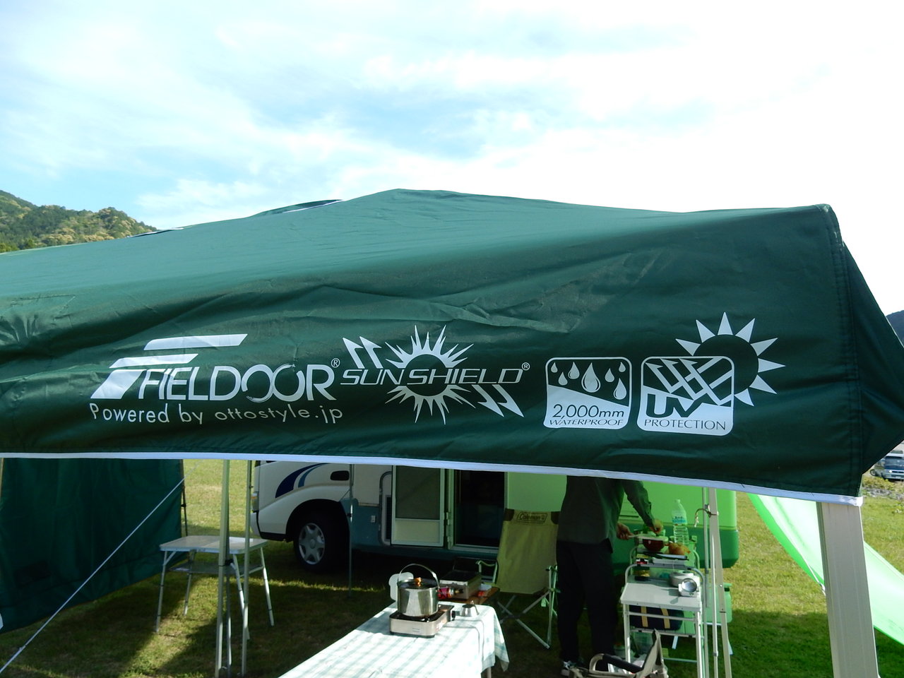 やはりシルバーコーティング加工のタープとサイドタープは春夏秋のキャンプには必需品ですねえ。