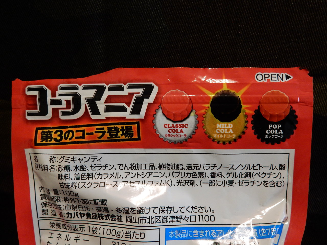 クラシックコーラ味とマイルドコーラ味とポップコーラ味の3種類が入ったハードグミであります。