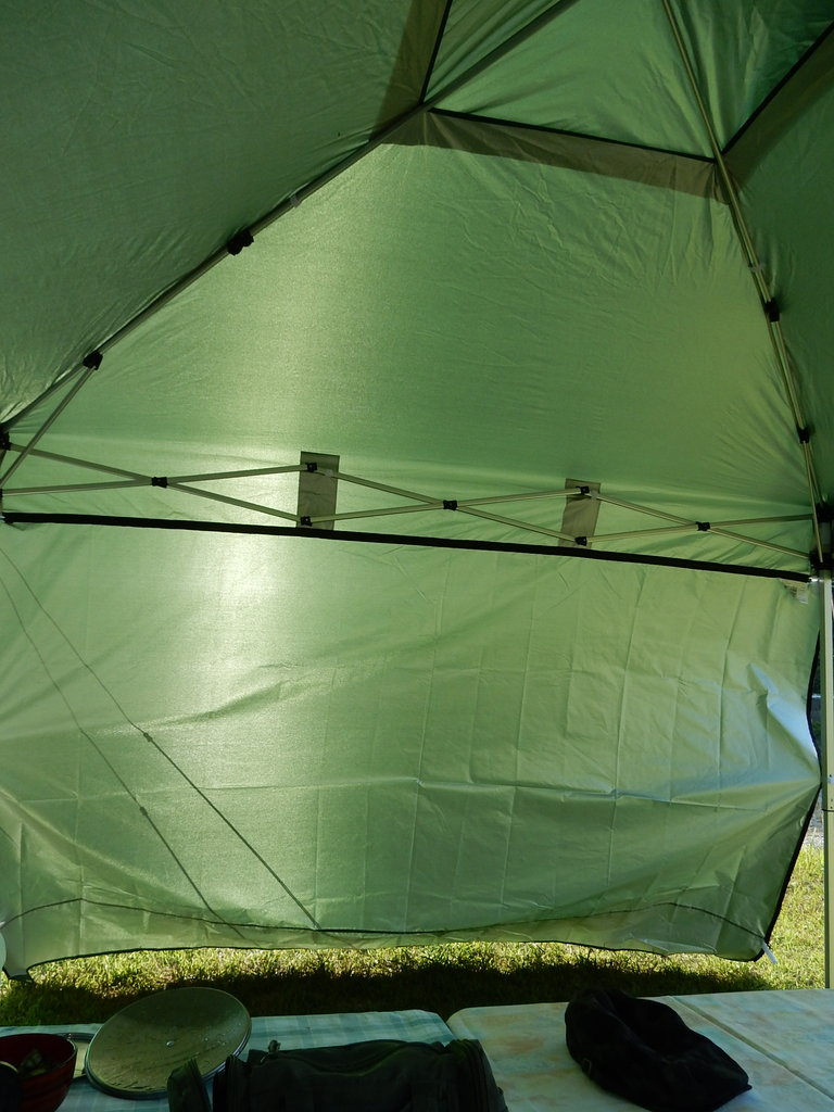 ポリエステル生地の裏側にはシルバーコーティングが施され、天頂部は風が抜けるようになってます。