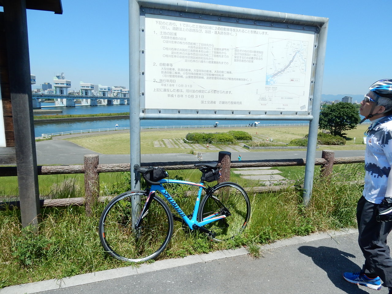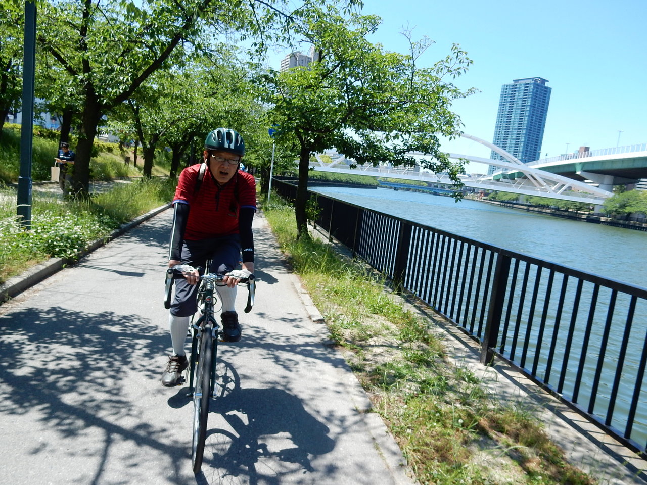 天満橋で3人が集合、大江橋から続く「北大阪サイクルライン」へ・・・