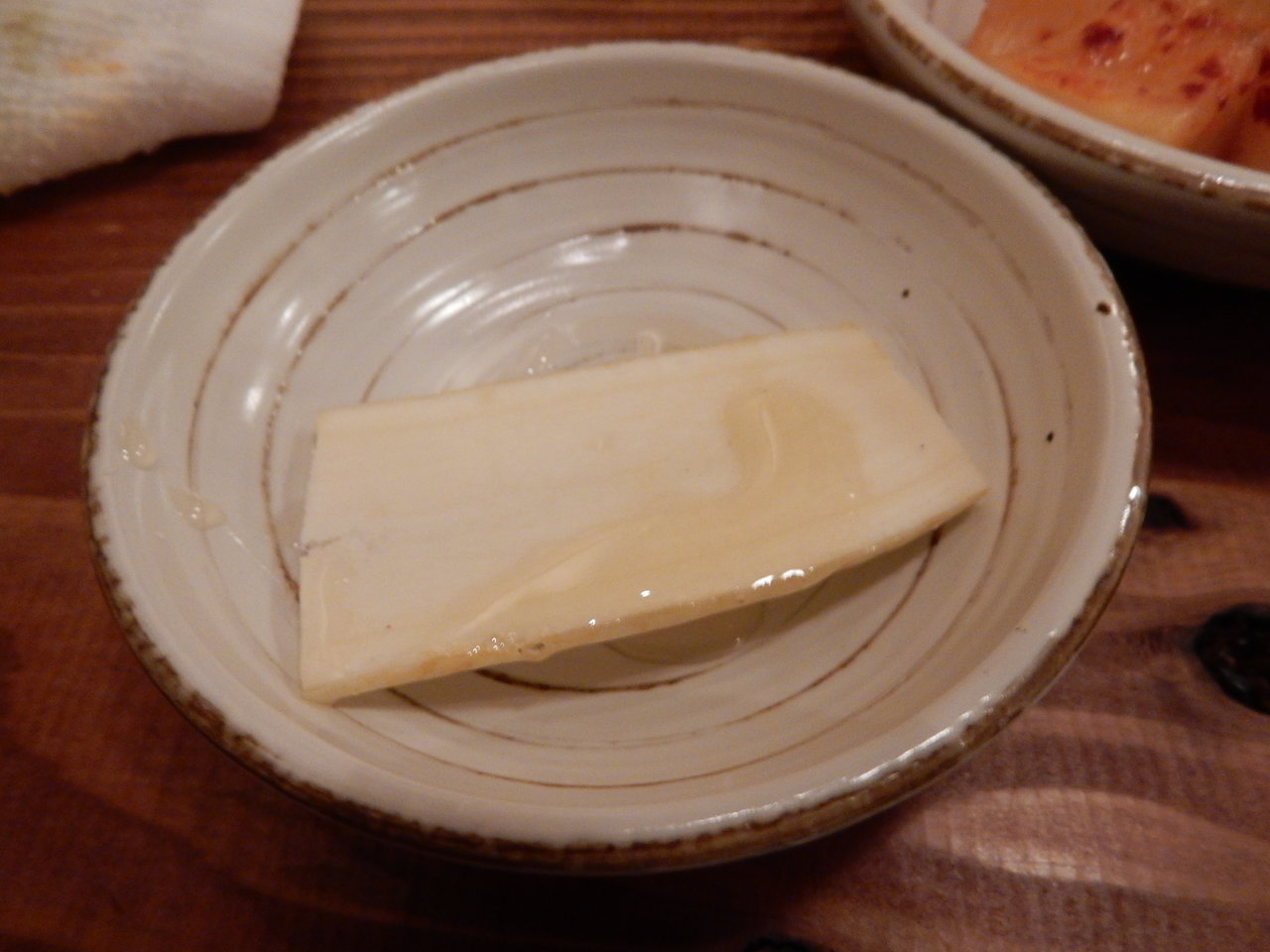 中央が高麗人参のお刺身、その右側にある蜂蜜を好みでつけていただきます・・・