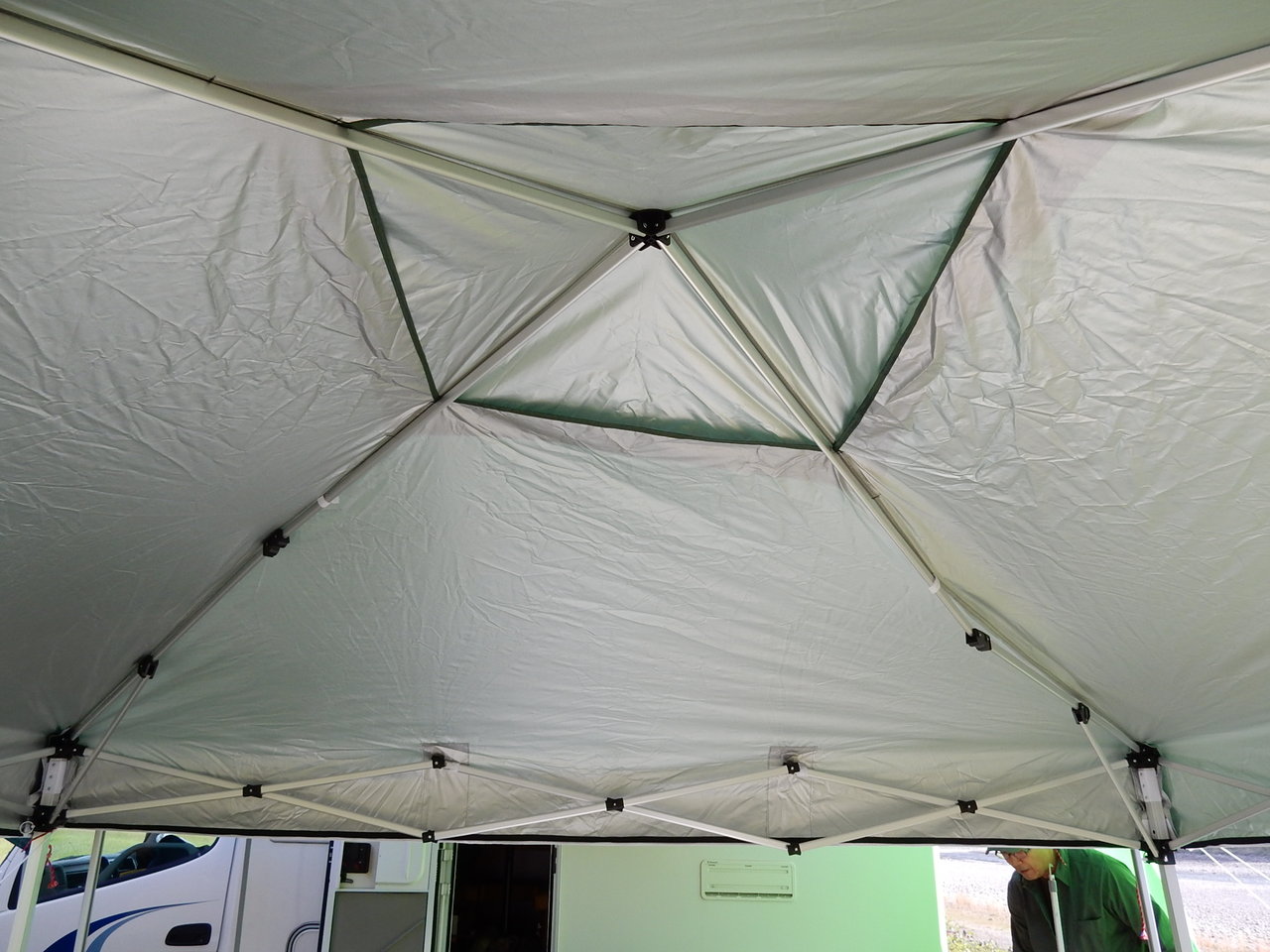 右側の骨組みが張ってませんが支柱にきちんとロックしてなかったためで、撮影後にロックしたら、