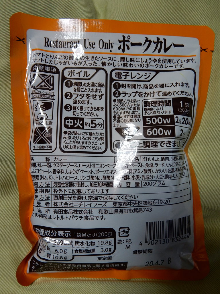 ニチレイの「ポークカレー」レストラン用・・・