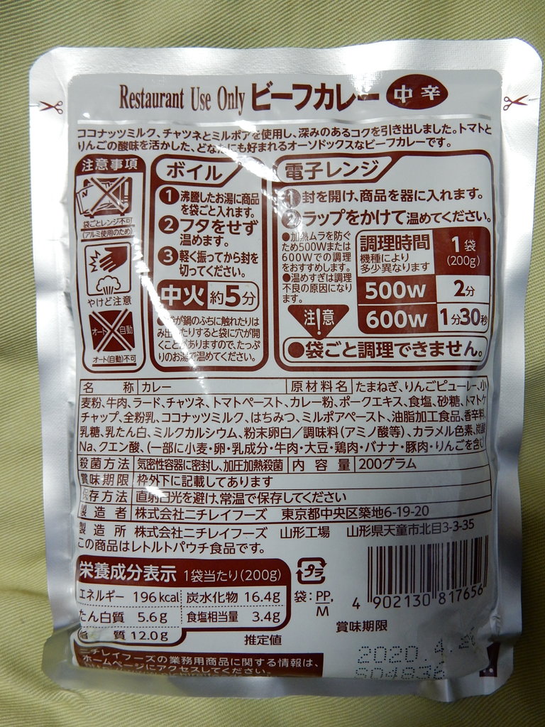 同じくニチレイの「ビーフカレー」レストラン用・・・