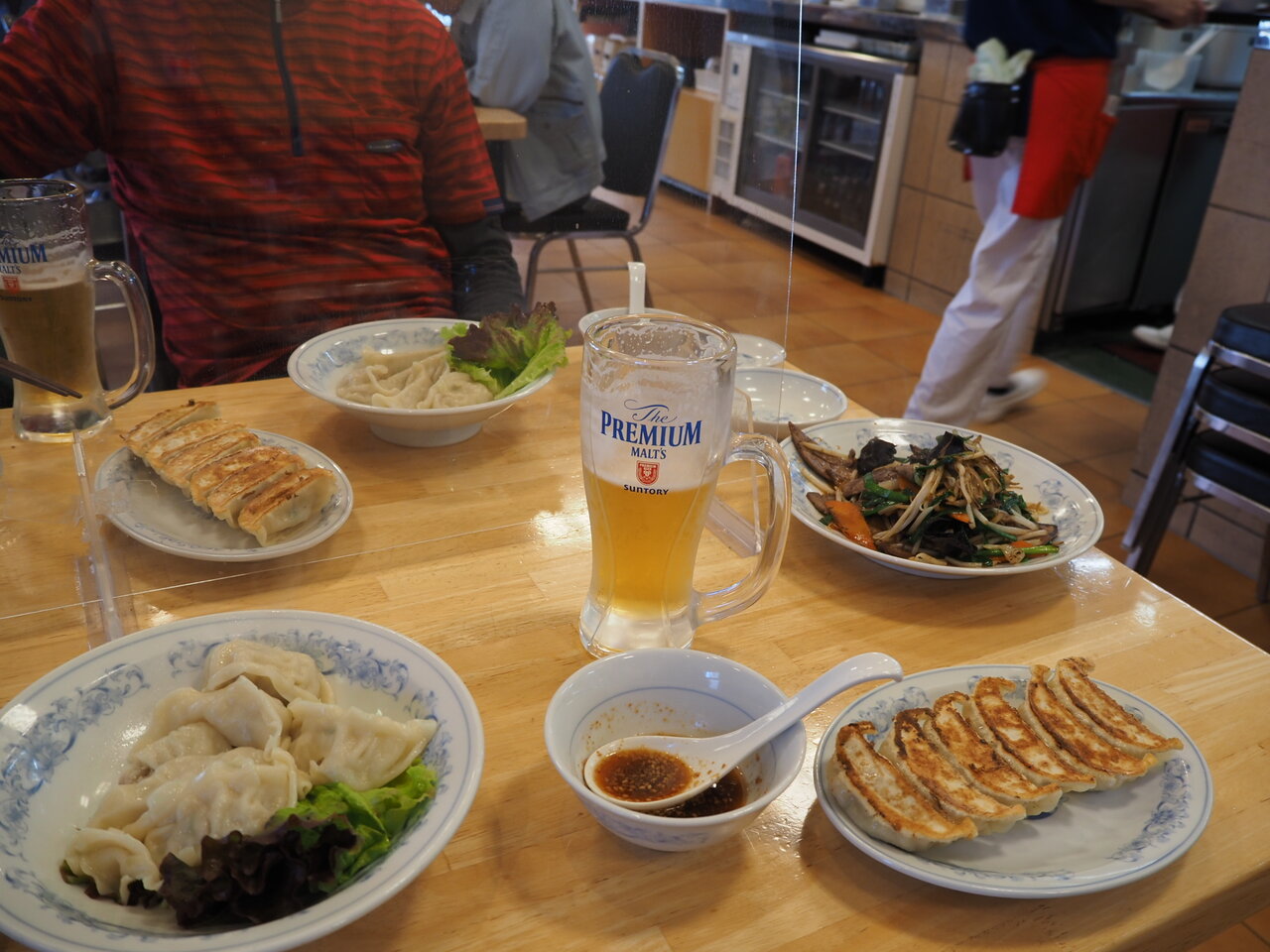 おなじみの水餃子と焼餃子とレバニラで二杯目もかぱかぱ・・・