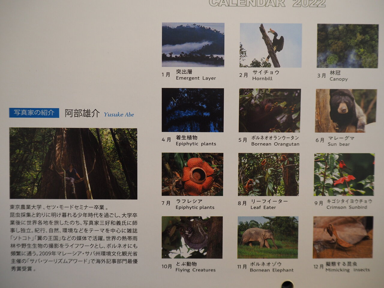 2022写真カレンダーで、制作費を除いた売り上げが熱帯雨林の保全活動に使われます。