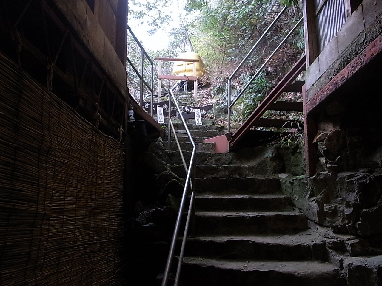 建物内にある、崖の中腹を穿った薄暗い階段を登った先には・・・