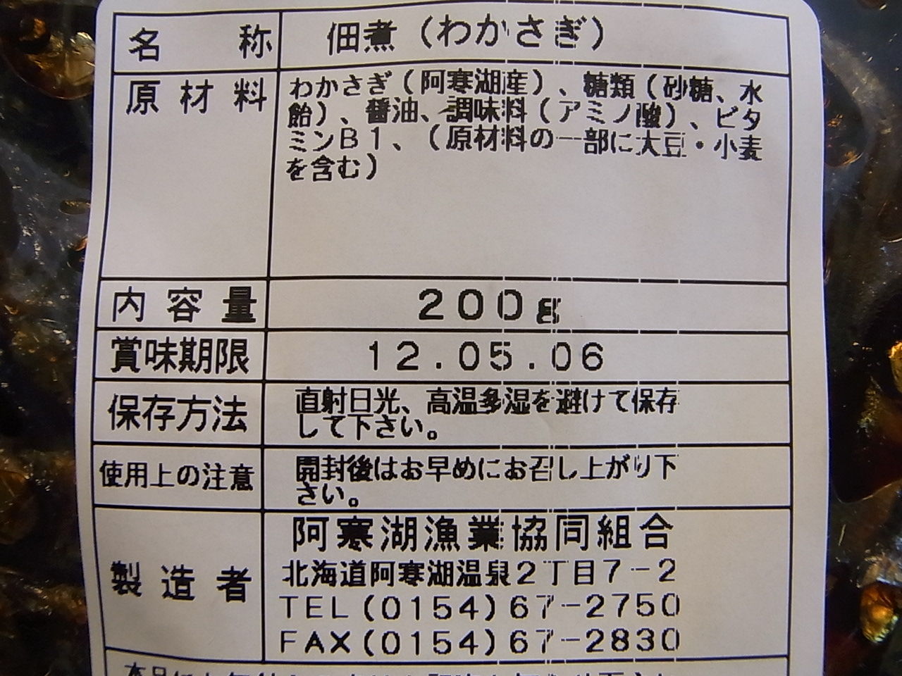 わかさぎの佃煮、とゆーのは、わたくしはじめてであります。しかも阿寒湖産であります。じゅるじゅる
