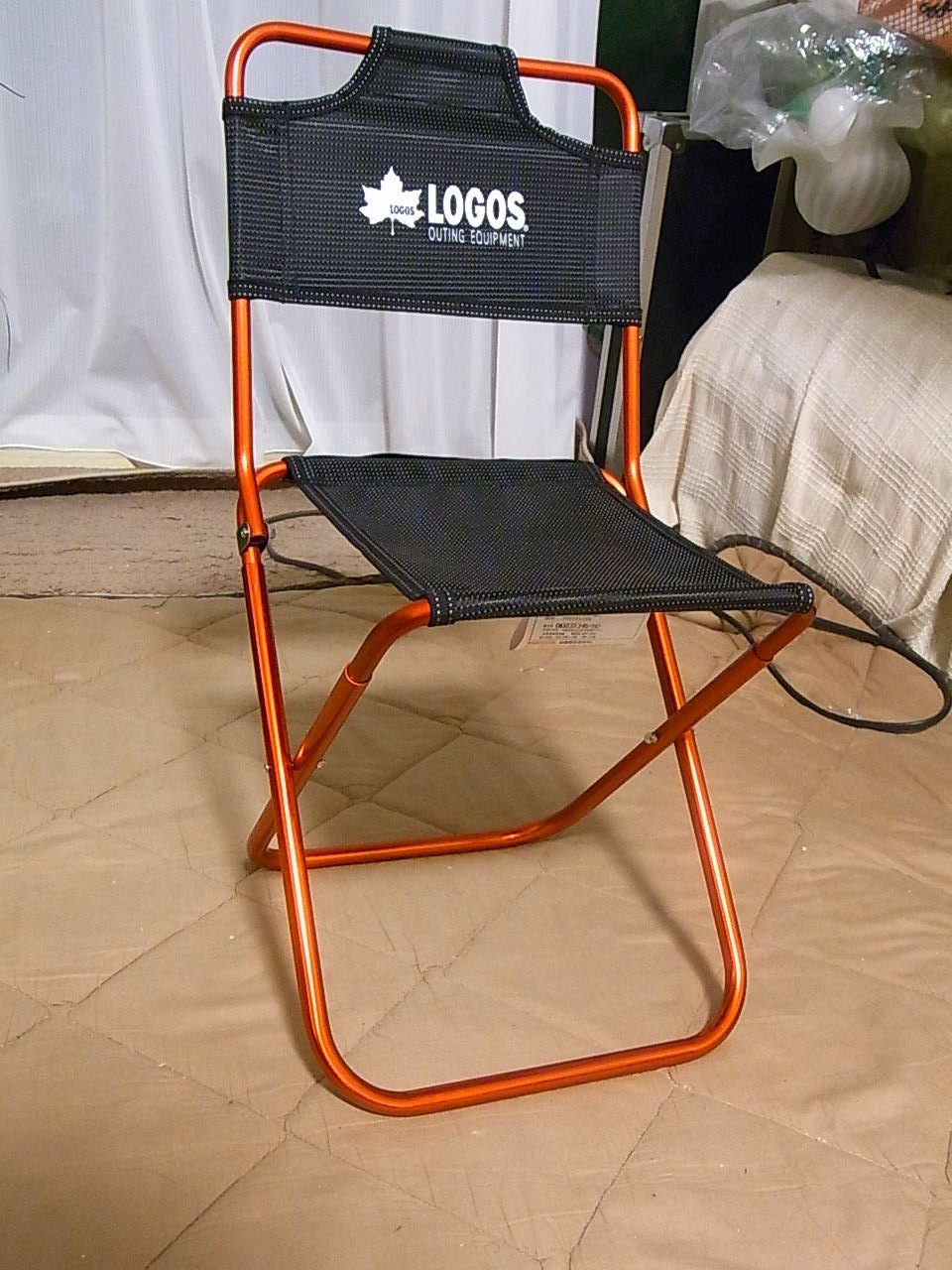 ロゴスのトレックチェアはW245,D290,H(座面)260で重さ400g、耐荷重は80kgでパイプ椅子同様平たくなるだけ・・・