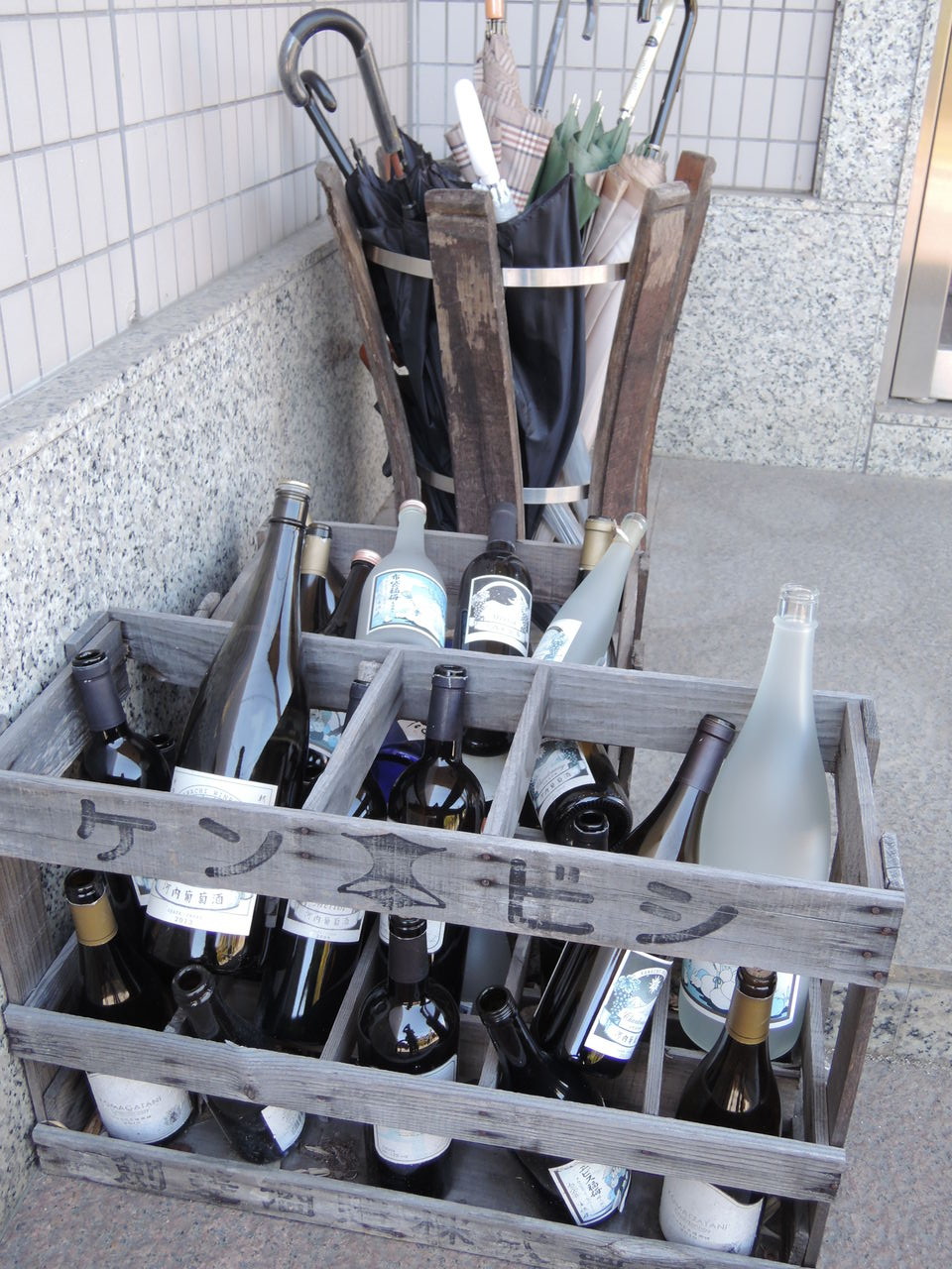 傘立ての前に、さりげに空きワインボトルの箱が・・・って、さりげに剣菱の箱ですが・・・