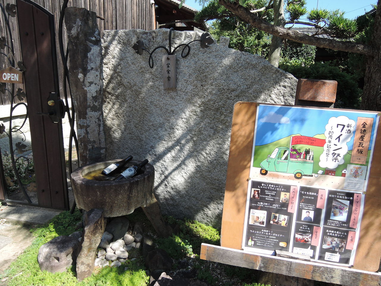手水鉢にもワインボトルが浸けてありましたが・・・
