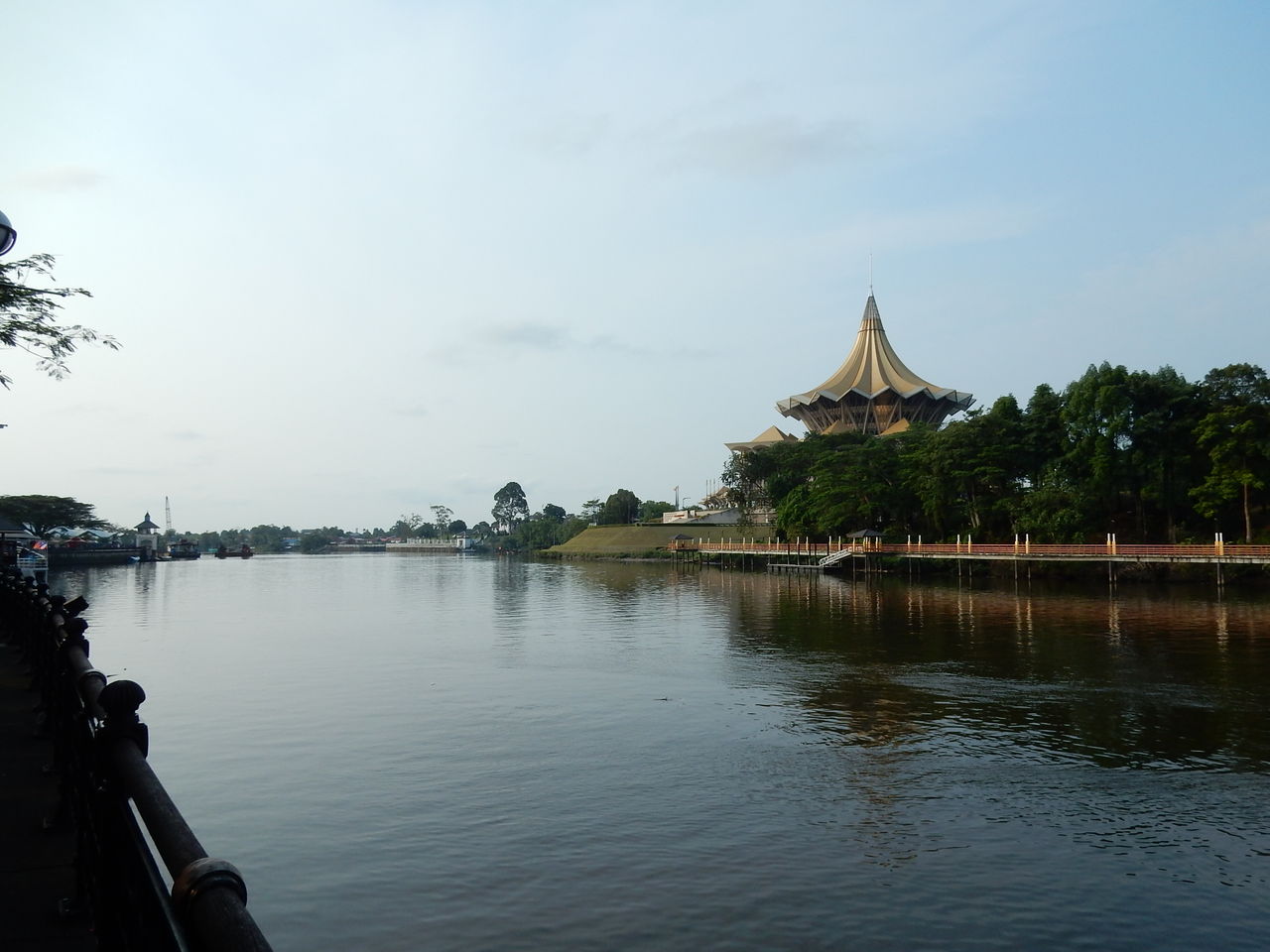 で、熱いシャワーを浴びて、夕食まで少し時間があったのでサラワク川沿いを散策。