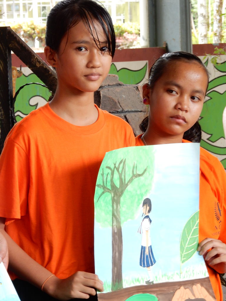 昼食後の交流会では、まず現地の子どもたちが描いた絵の中から優秀作品を発表。