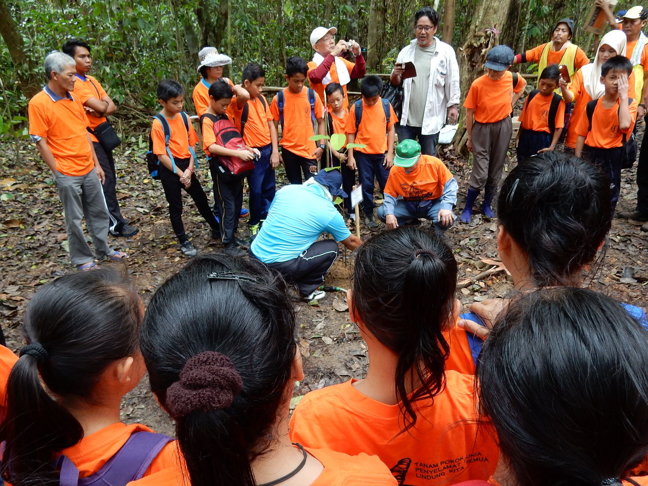 森林局のスタッフがマレー語で説明しながらお手本を示します。