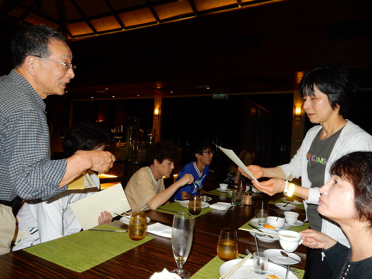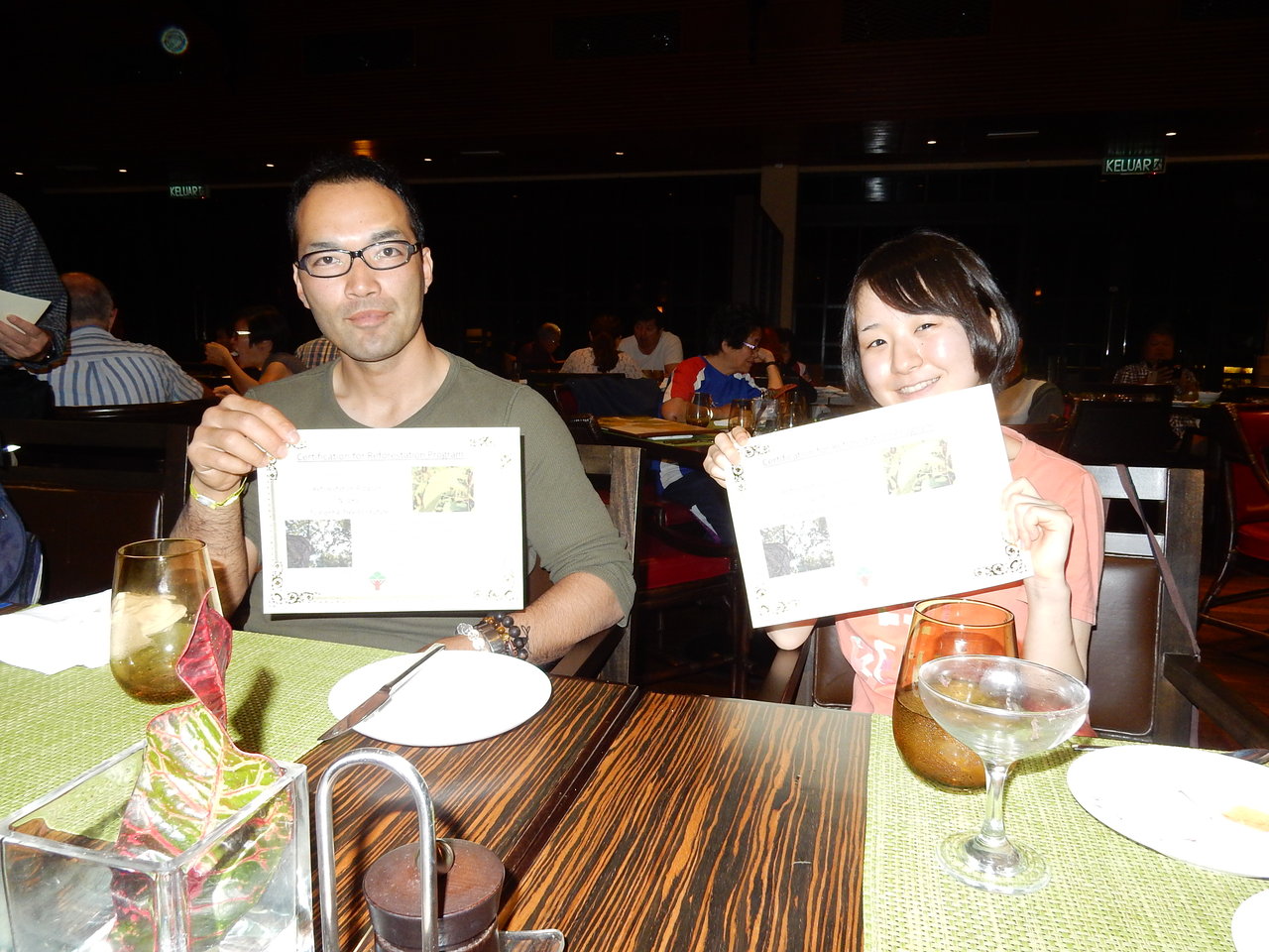 で、まったりと夕食後は、Y崎副代表がいったん預かっていた植林証明書を配布・・・