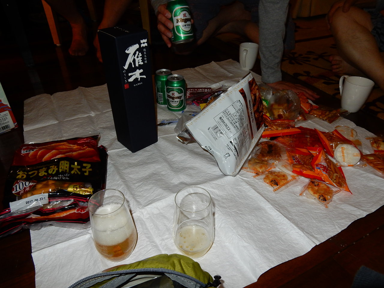 岩国の地酒「雁木ゆうなぎ」(隊長がリクエストしてN井隊員にわざわざ持参いただいたもの)や、
