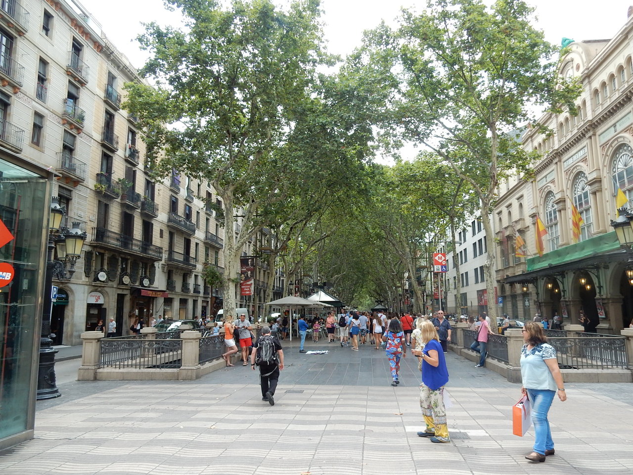 と、新市街へ出たところがメインストリートの「ランブラス通り」で、この通りを・・・