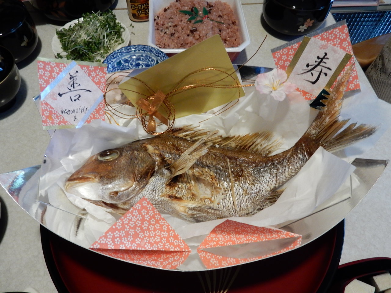 ま、尾頭付きなら雑魚でも何でもいいのですが、これもせっかくなので定番の鯛に・・・