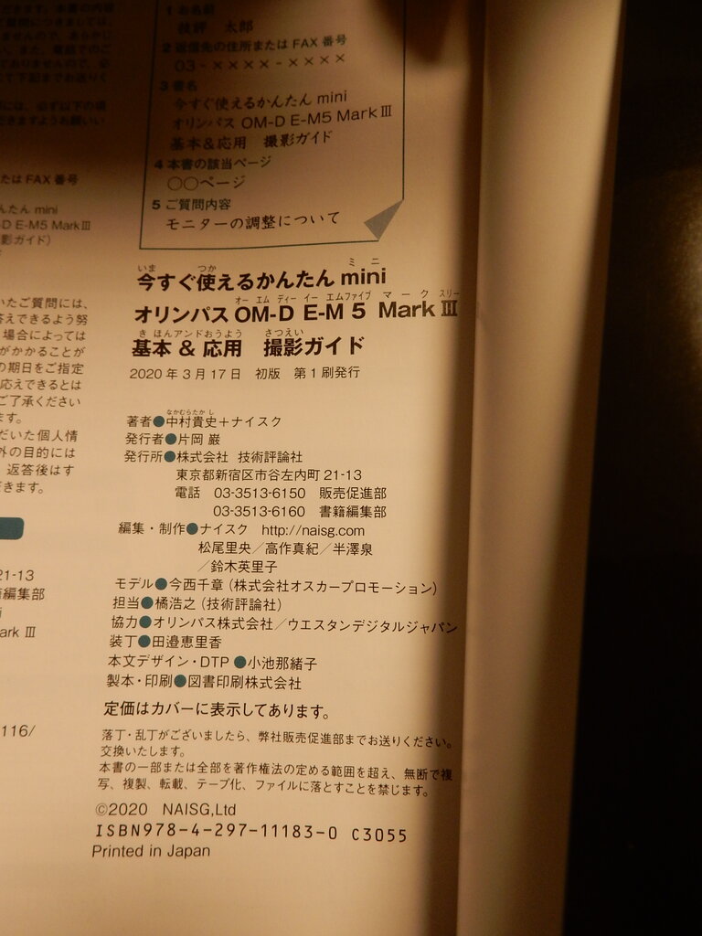 まずは機種別(OM-D E-M5 MarkⅢ)のマニュアル本から・・・