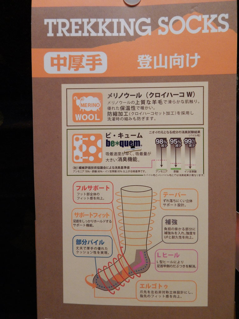 これらのトレッキング・ソックス、その名のとおり本来はトレッキング用なのですが、山歩きの回数が