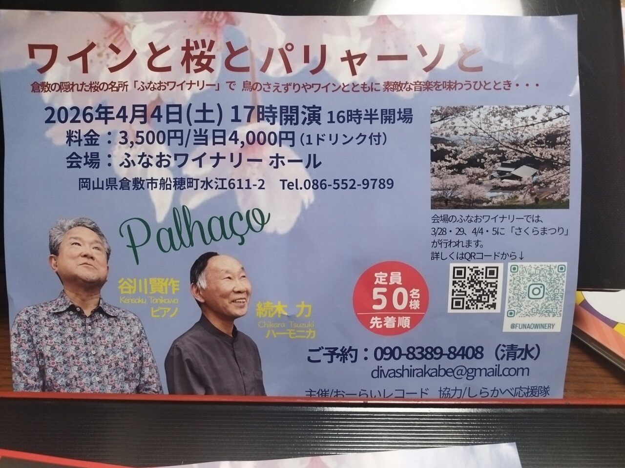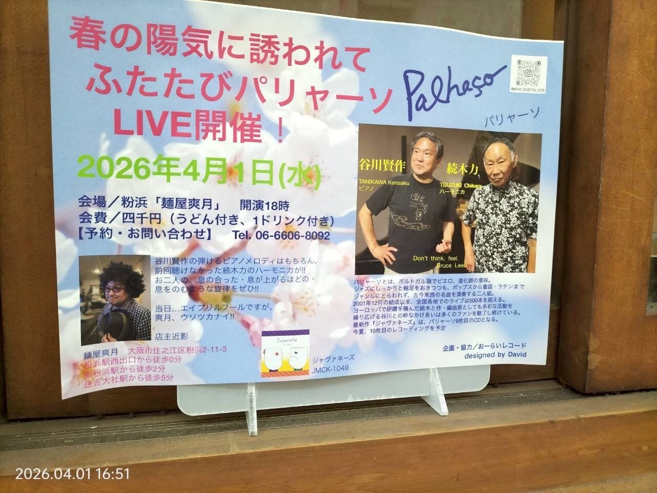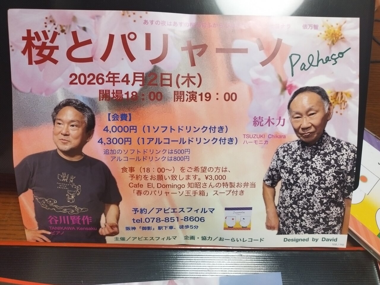 ピアノの谷川賢作さんとハーモニカの続木力さんの「パリャーソ」ライブでした!!!