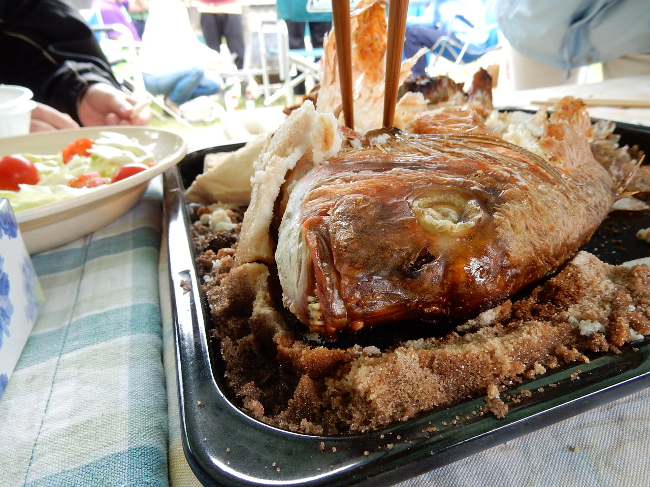 メイン宴会は若手による鯛の塩釜焼にはじまり・・・
