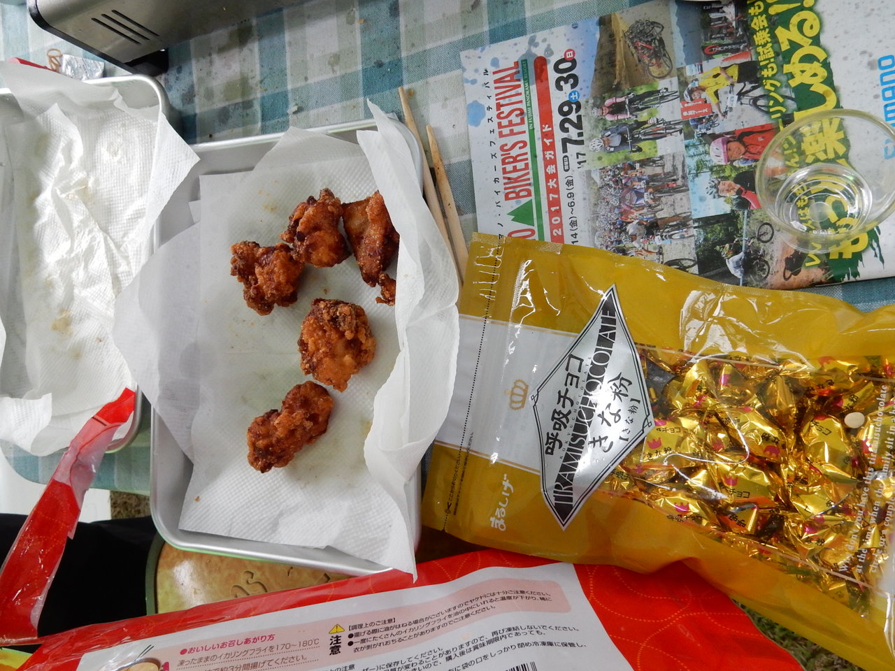 鶏の唐揚げに、wingさん持参の「呼吸チョコ・きな粉味」・・・